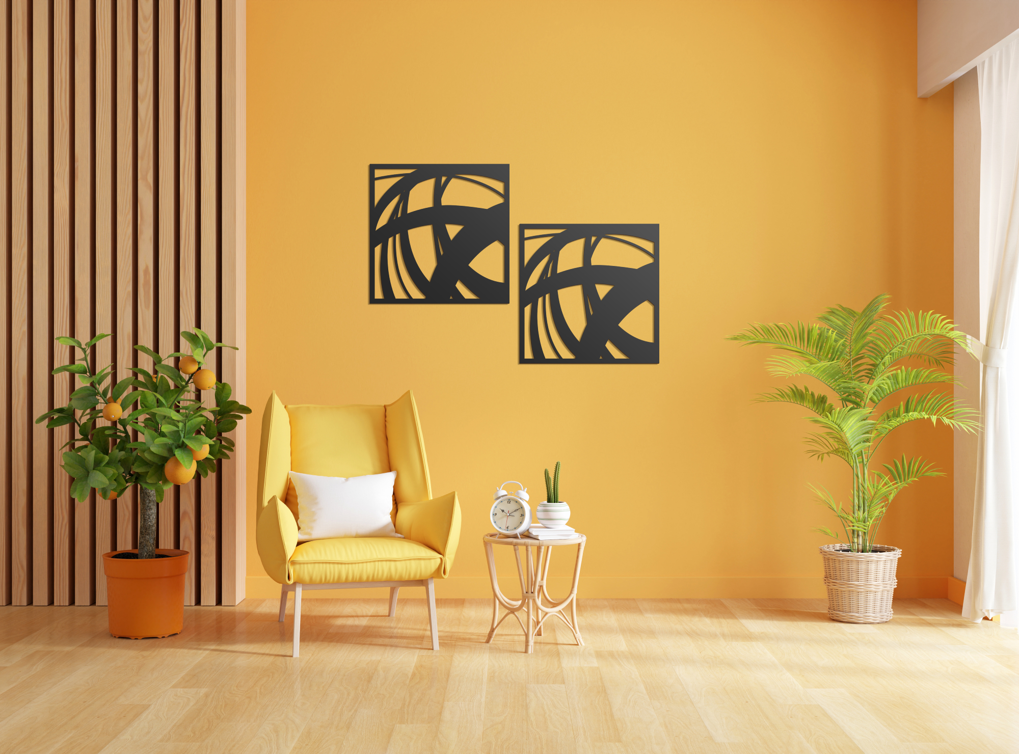 A HDF (High Density Fiberboard) farostból és gyantából préselt, nagy sűrűségű lemez. Gyakran újrahasznosított faanyagból készítik, ezzel minimalizálva a hulladékot, környezetbarátabbá téve a gyártási folyamatot. HDF lemezből készült falpaneleink lézertechnológiával készülnek, precíz lézervágónk egészen apró, összetett minták vágását is lehetővé teszi, így hihetetlenül részletes dizájnokat is tudunk készíteni. Ennek köszönhetően minden darab teljesen egyforma, lehetővé téve, hogy több darabból terülőmintát hozzunk létre. A HDF lemez szilárd, azonban 3 mm-es vastagságának köszönhetően otthon is könnyen vágható, fúrható. Nem forgácsolódik, csak finom port hagy maga után. Más három dimenziós faldekorációkhoz képest sokkal könnyebb, fúrás és szegelés nélkül is könnyedén rögzíthető. Habosított kétoldalú ragasztószalaggal, vagy pisztolyos ragasztókkal egyszerűen és gyorsan felhelyezhető falfelületekre. Nagyobb méretű képeket érdemes szeggel rögzíteni. Javasoljuk, hogy kis fejű szögeket vásároljon. A szög feje segít a terméket a falhoz rögzíteni. A termékek áttört mintájának köszönhetően a falpanelek szögekre akaszthatóak anélkül, hogy megsértse a panelt. További javaslatokért nézze meg Szerelési Útmutatónkat.