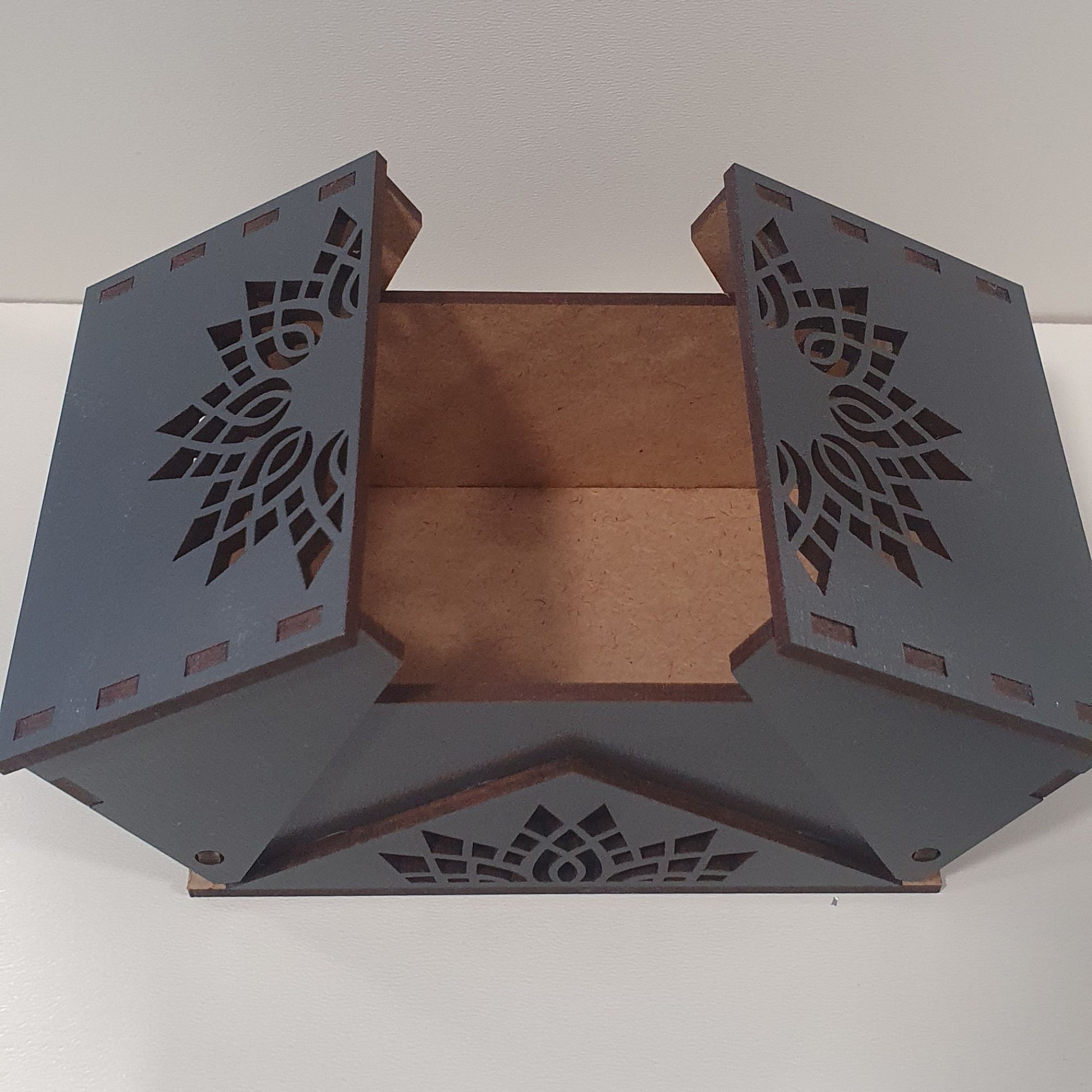 Egy igazán egyedi, stílusos lézer boxot keresel? Ez a gondosan kidolgozott, lézervágott mintával díszített fa doboz nemcsak praktikus, de látványos dísze is lehet bármely helyiségnek. A precíz lézervágásnak köszönhetően finom, szimmetrikus mintázat díszíti a doboz minden oldalát, miközben a kézzel összeállított szerkezet időtállóságot és minőséget sugall. A lézer box két oldalra nyitható teteje egyedi megoldás, amely egyszerre elegáns és funkcionális – tökéletes ajándékcsomagolásként, vagy ékszerek, emlékek, apró kincsek stílusos tárolására. Kérheted: fehér, bézs, sonoma, dió, antracit és fekete színben.
