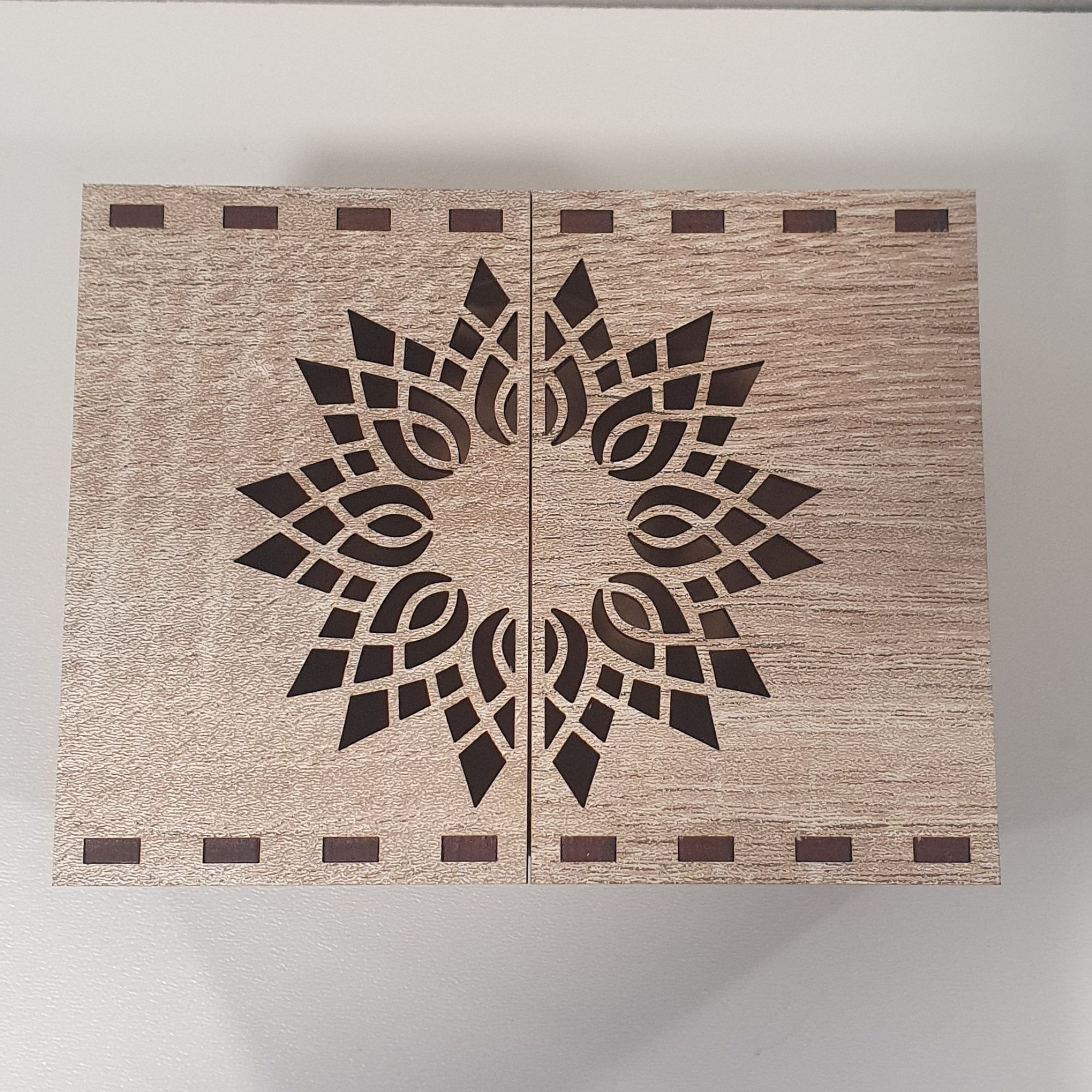 A HDF (High Density Fiberboard) farostból és gyantából préselt, nagy sűrűségű lemez. Gyakran újrahasznosított faanyagból készítik, ezzel minimalizálva a hulladékot, környezetbarátabbá téve a gyártási folyamatot. HDF lemezből készült termékeink lézertechnológiával készülnek, precíz lézervágónk egészen apró, összetett minták vágását is lehetővé teszi, így hihetetlenül részletes dizájnokat is tudunk készíteni. A lézer boxok többféle méretben és záródással készülnek, fedeleik külöböző módon mozognak. Az úgynevezett "living hinge" (élő zsanér) technológiával a sűrűn átvágott HDF lemezt hajlítani lehet, a szilárd 3 mm-es lemezből lekerekített éleket hozhatunk létre. A dobozok összeszerelése is változatos, van amelyik ragasztással történik, van amelyik egyszerűen egymásba pattanó, szorosan illeszkedő elemekből áll.