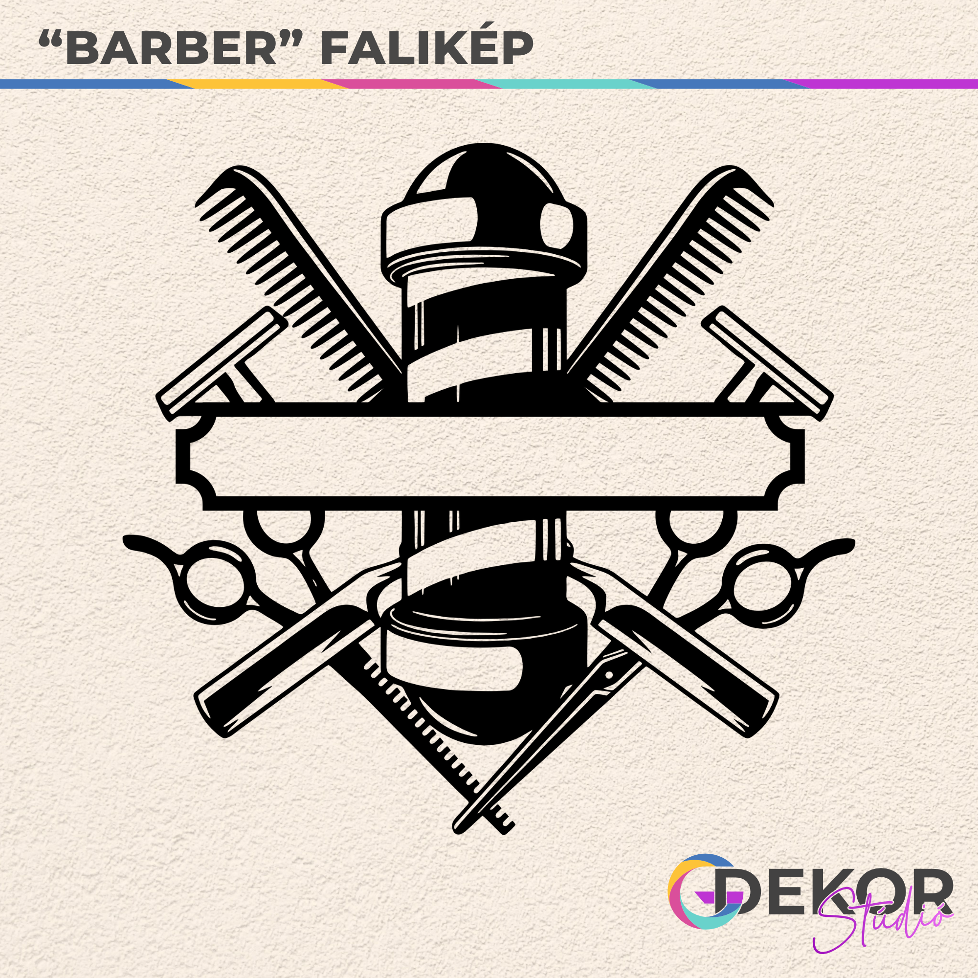 Szeretnéd, ha szalonod már belépéskor is igazi profi és barátságos hangulatot árasztana? A „Barber” falikép tökéletes választás minden borbélyszalon, fodrászat vagy akár otthoni dolgozósarok díszítésére! Az ikonikus borbélyrúd, olló, fésű, borotva és egyéb klasszikus eszközök letisztult, mégis részletgazdag grafikája garantáltan magára vonzza a vendégek tekintetét.