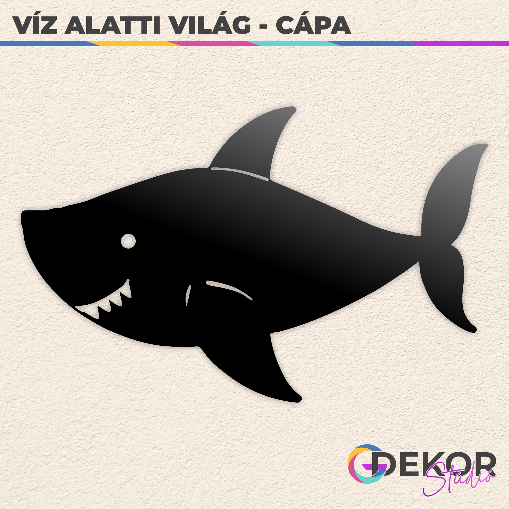 A cápákról elterjedt tévhit, hogy nagyon veszélyesek, azonban a hollywoodi filmekkel ellentétben a cápatámadás a való életben nagyon ritka. Ugyan az emberre ritkán jelentenek veszélyt, de kiváló ragadozók, méltán ismerik őket az óceán királyaként. Ezt a gyönyörű állatot alakítottuk mosolygós, barátságos gyerekszoba dekorációvá. A termék a Víz Alatti Világ panoráma szett kiegészítő eleme, de nagyobb méretének köszönhetően önálló dekorációként is megállja helyét gyerekszobában, játszósarokban, óvodákban. Több féle méretben és színben elérhető, így biztosan megtalálod a Te falszínedhez és stílusodhoz illő változatot.