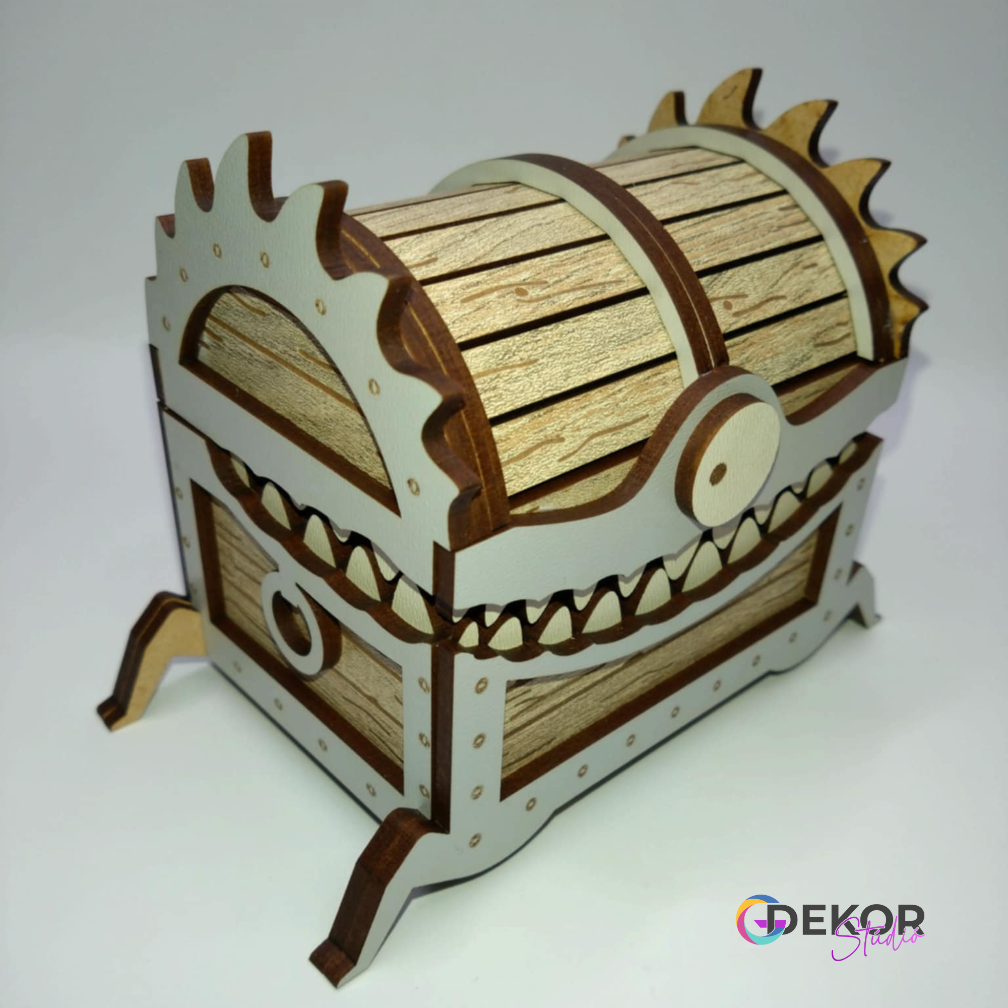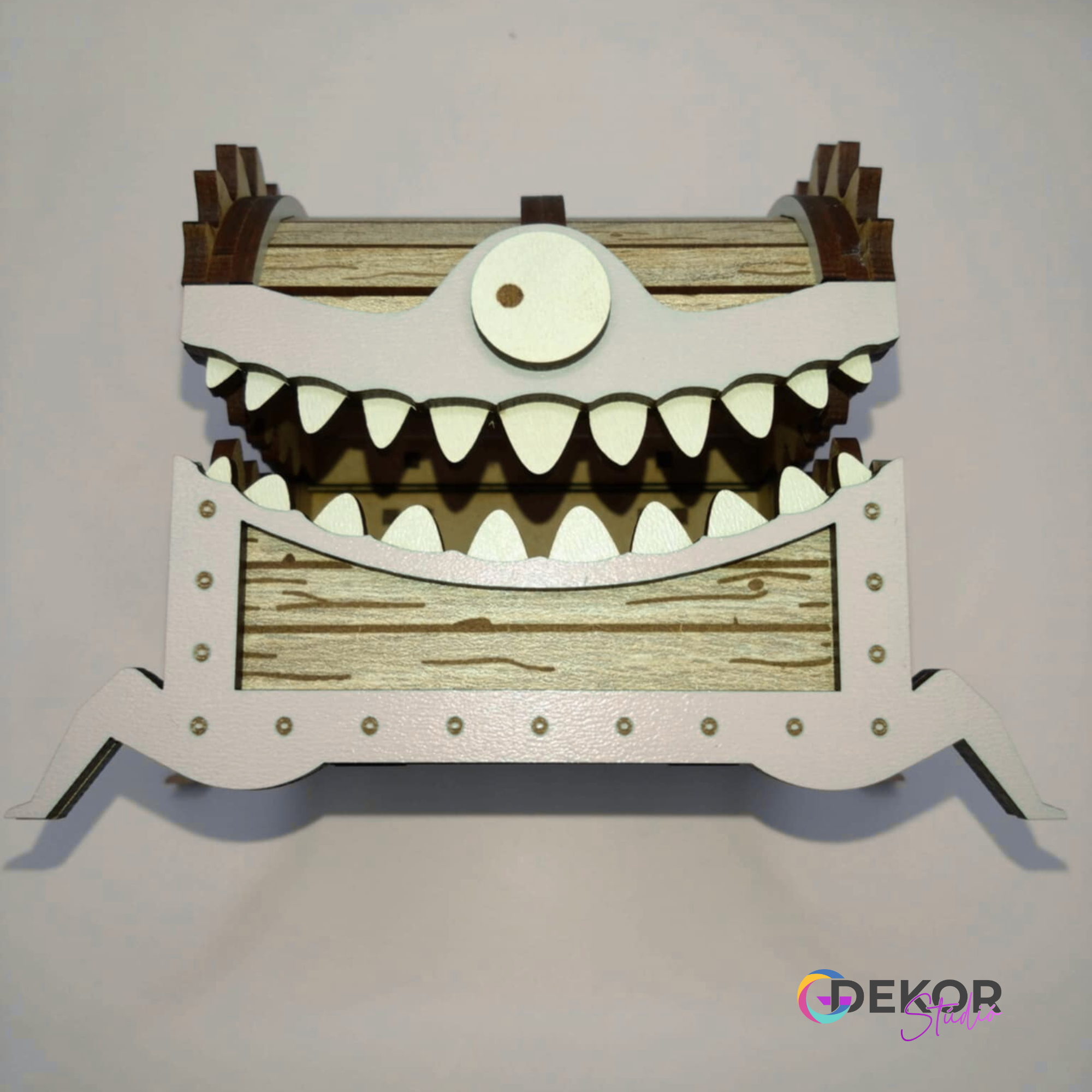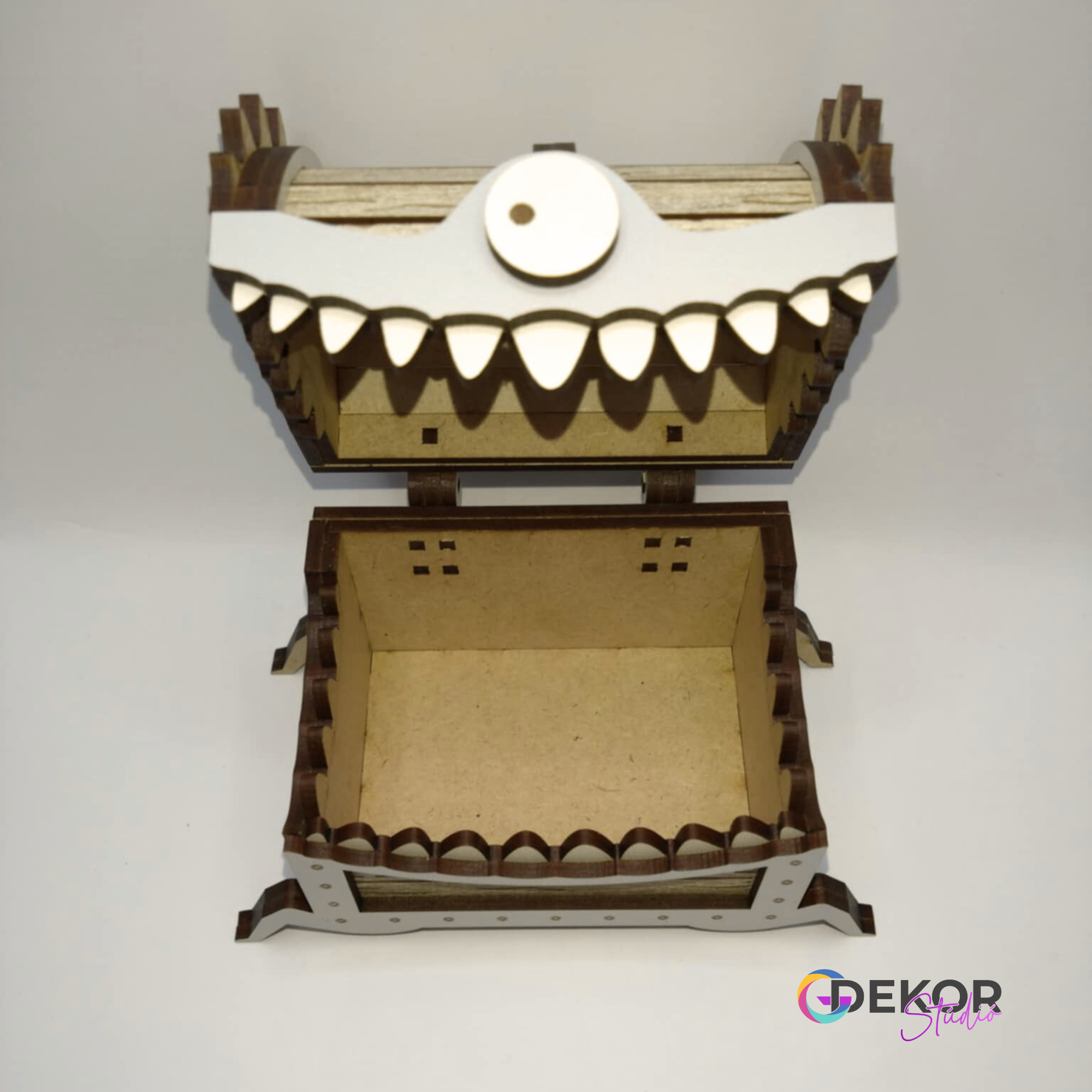 A Csokifaló Halloween-i ládikó egy különleges, fából készült édességtartó, amely bohókás fogsorral és vidám kinézettel hívogatja a gyerekeket: „Töltsd meg csokival!”.