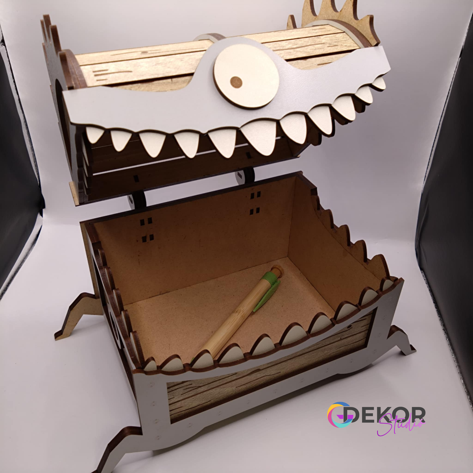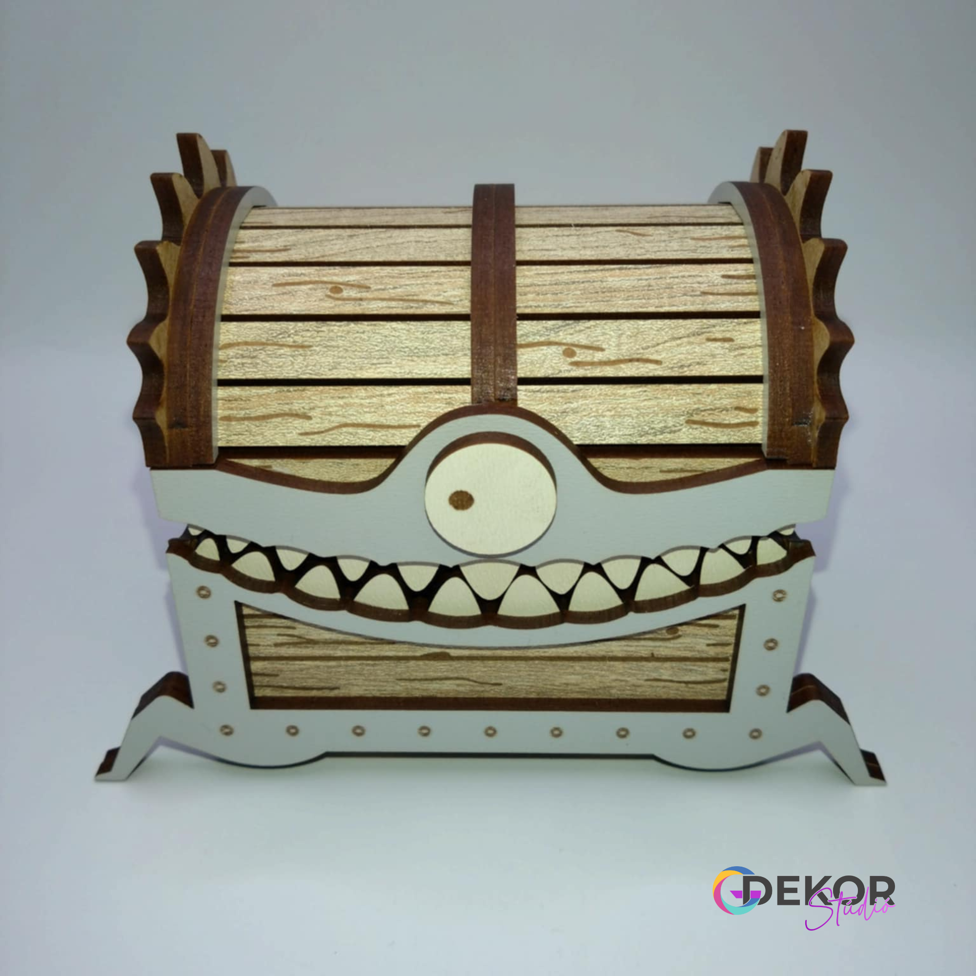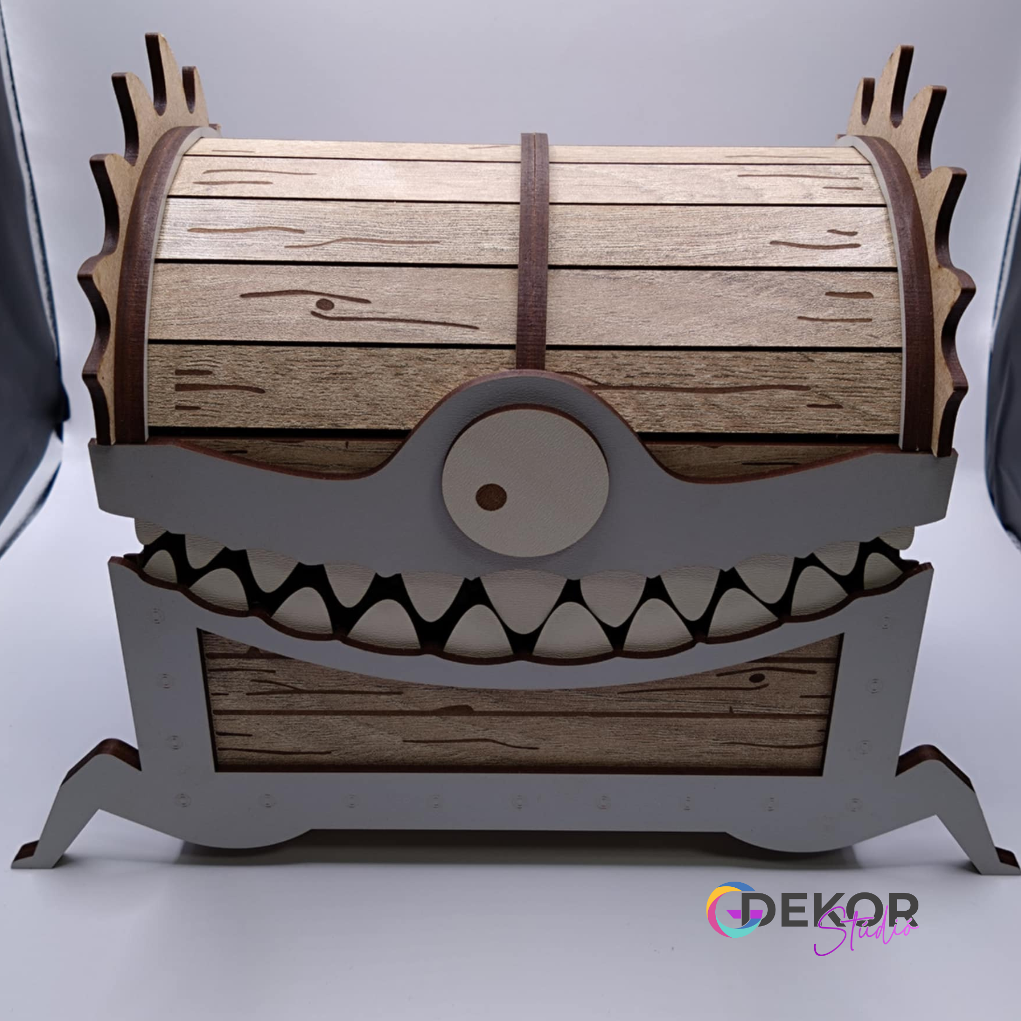 A Csokifaló Halloween-i ládikó egy különleges, fából készült édességtartó, amely bohókás fogsorral és vidám kinézettel hívogatja a gyerekeket: „Töltsd meg csokival!”.