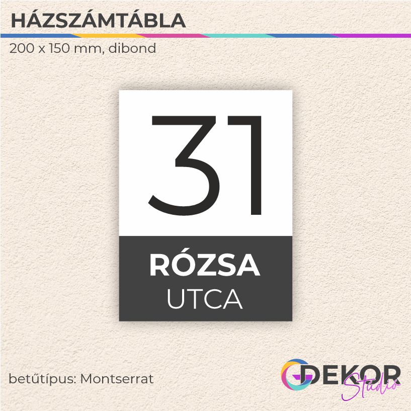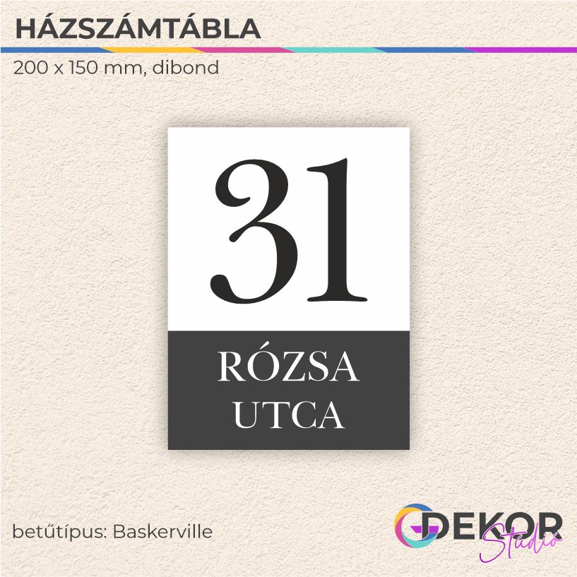 Fehér alapú Dibond tábláink kiváló kontrasztot adnak a sötétebb színeknek, így a házszám mindig jól látható marad.