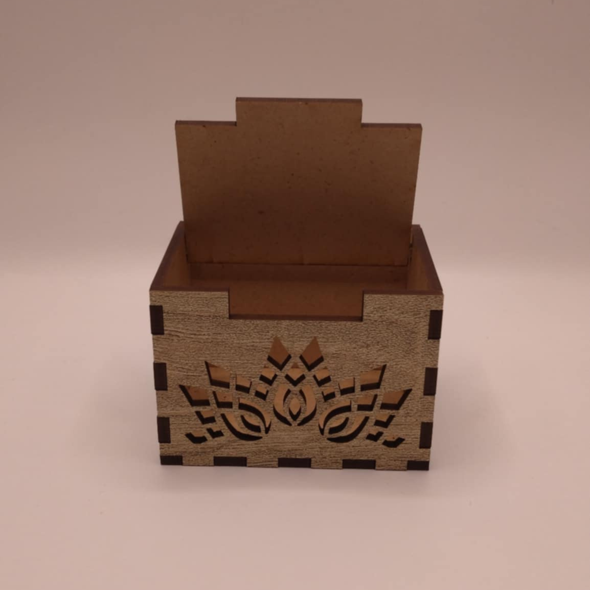 A doboz 3 mm vastag HDF anyagból készül, precíz lézervágással. A kompakt méret (5×5×7 cm) ideális apró tárgyak, édesség, kis kiegészítők vagy céges ajándékok átadásához. Könnyű, mégis tartós, évekig megőrizhető.