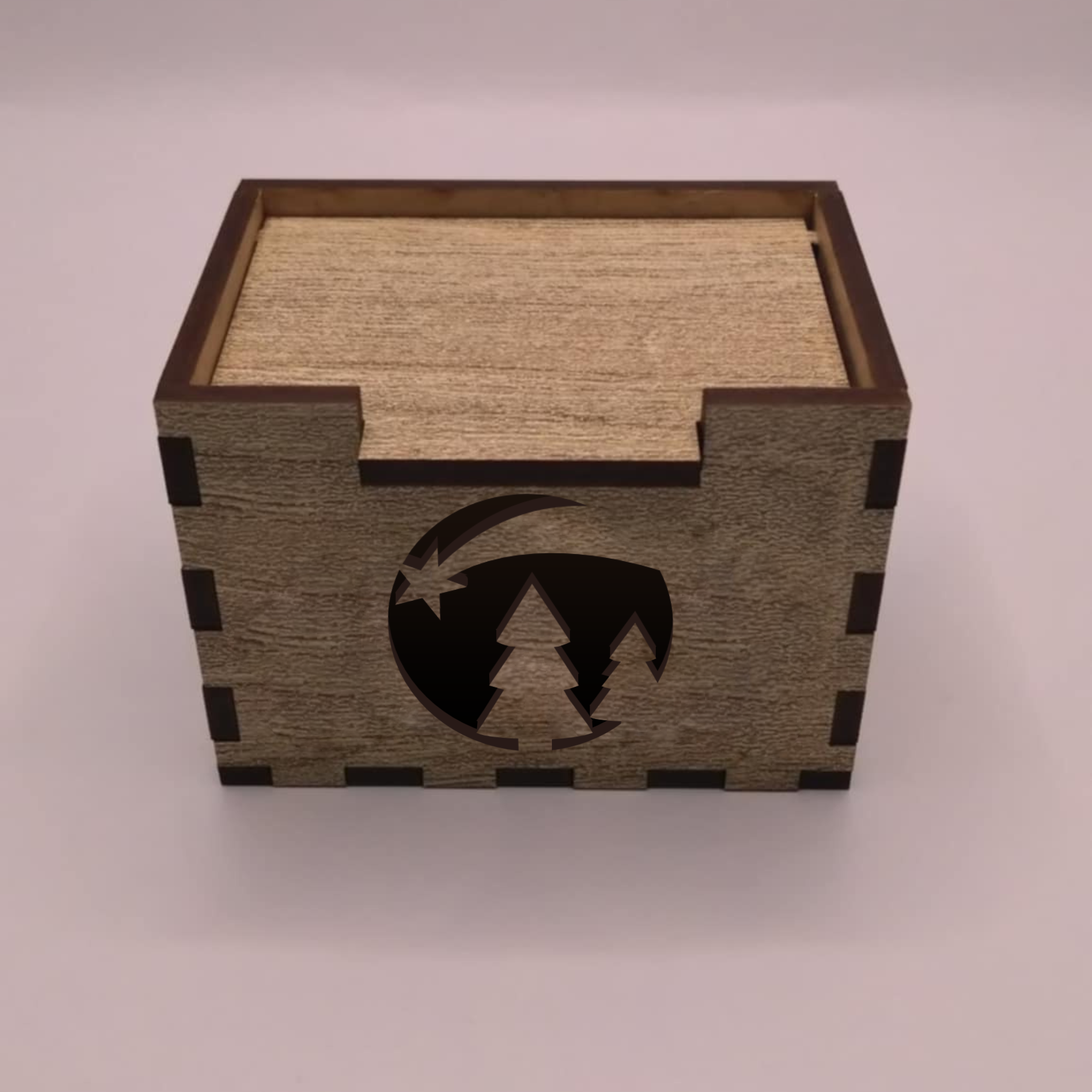 Mini fa ajándékdoboz – lézervágott mintás, 5×5×7 cm