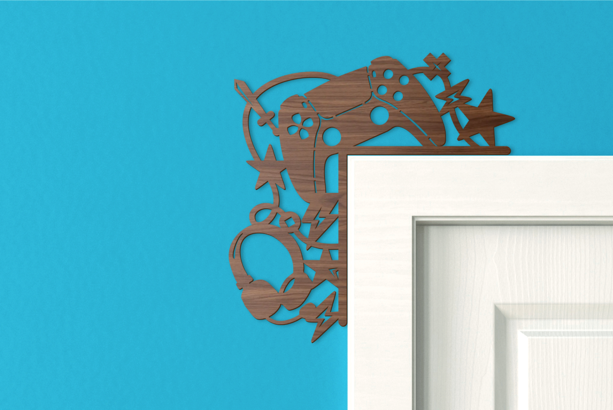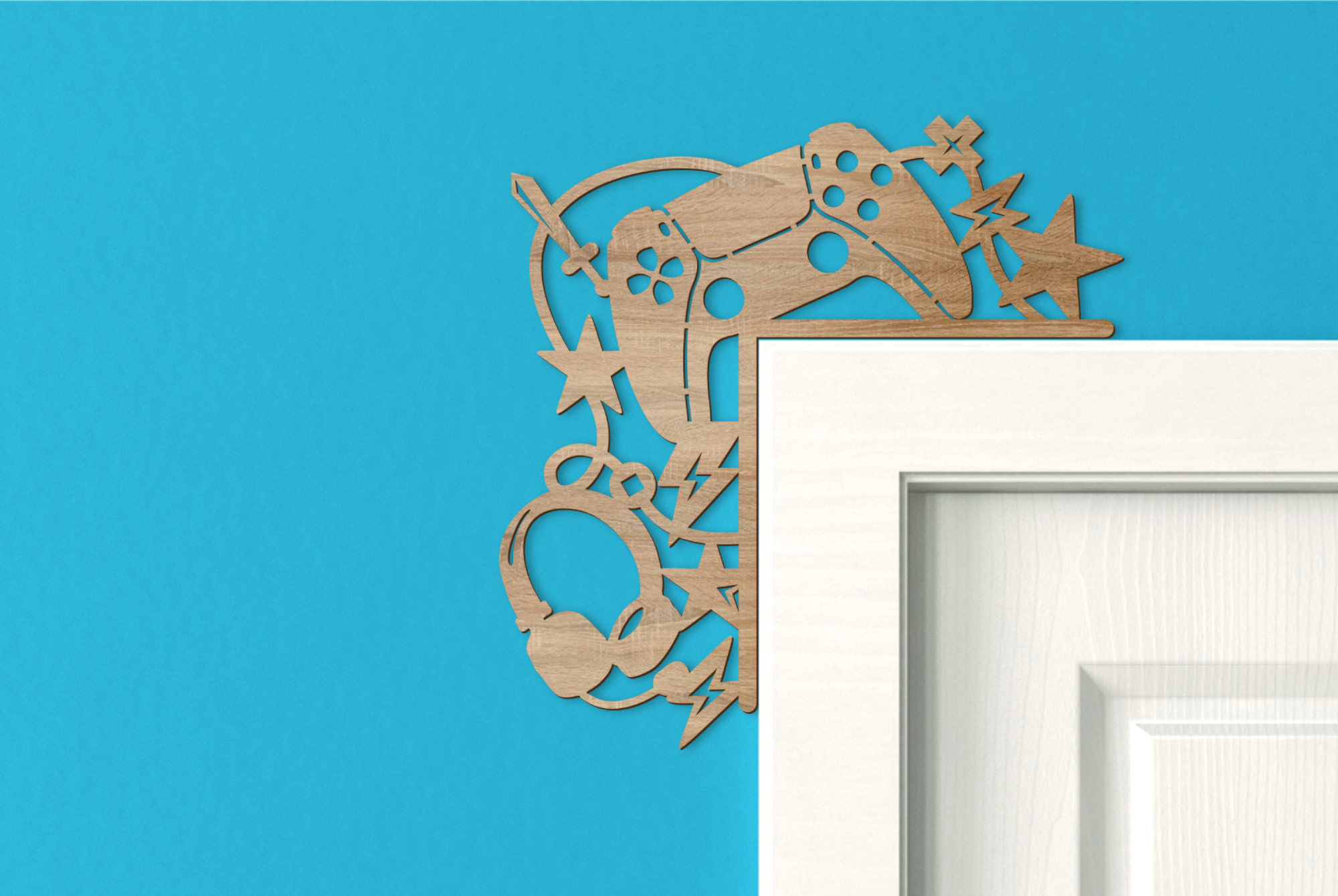 Életkortól függetlenül a videojátékok szerelmeseinek ajálnjuk ezt az ajtókeret fölé tervezett sarokdíszt. A díszítőelem egy ajtó fölött mutat igazán jól, de szabadon elhelyezheted bármilyen sík falfelületre. Egy Playstation 5 kontroller és egy headset a főbb díszei, de a kábelek között egyéb, digitális kikapcsolódásra utaló motívumokat is elrejtettünk. Jó játékot!