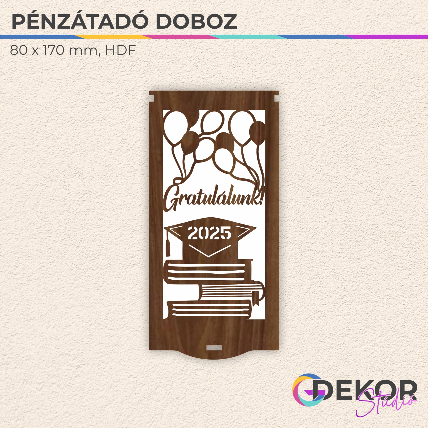 Legyen szó ballagásról, diplomaosztóról – egy „Gratulálunk” feliratú pénzátadó doboz tökéletes választás, ha pénzt ajándékoznál, de nem akarsz sablonos megoldással élni.