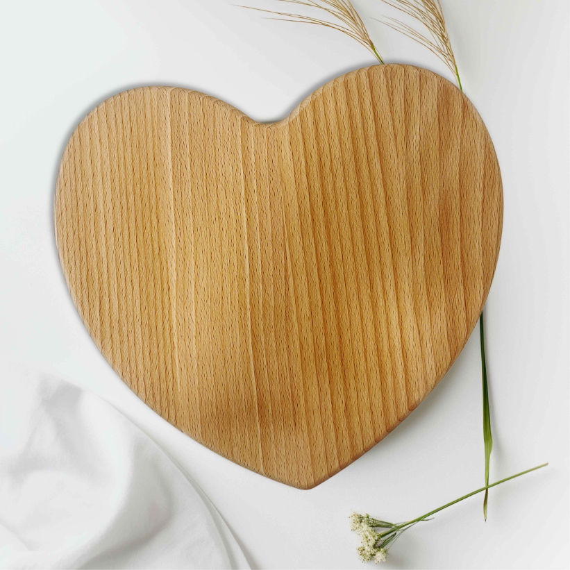 Ez a szív formájú vágódeszka vagy tálaló igazán különleges darab, amely bármilyen alkalmat ünnepivé varázsol. Tartós, tömör bükkfából készült, így nemcsak dekoratív, de praktikus is a mindennapokban. Ideális sütemények, zöldségek, sajtok vagy akár húsok szeletelésére és tálalására egyaránt.