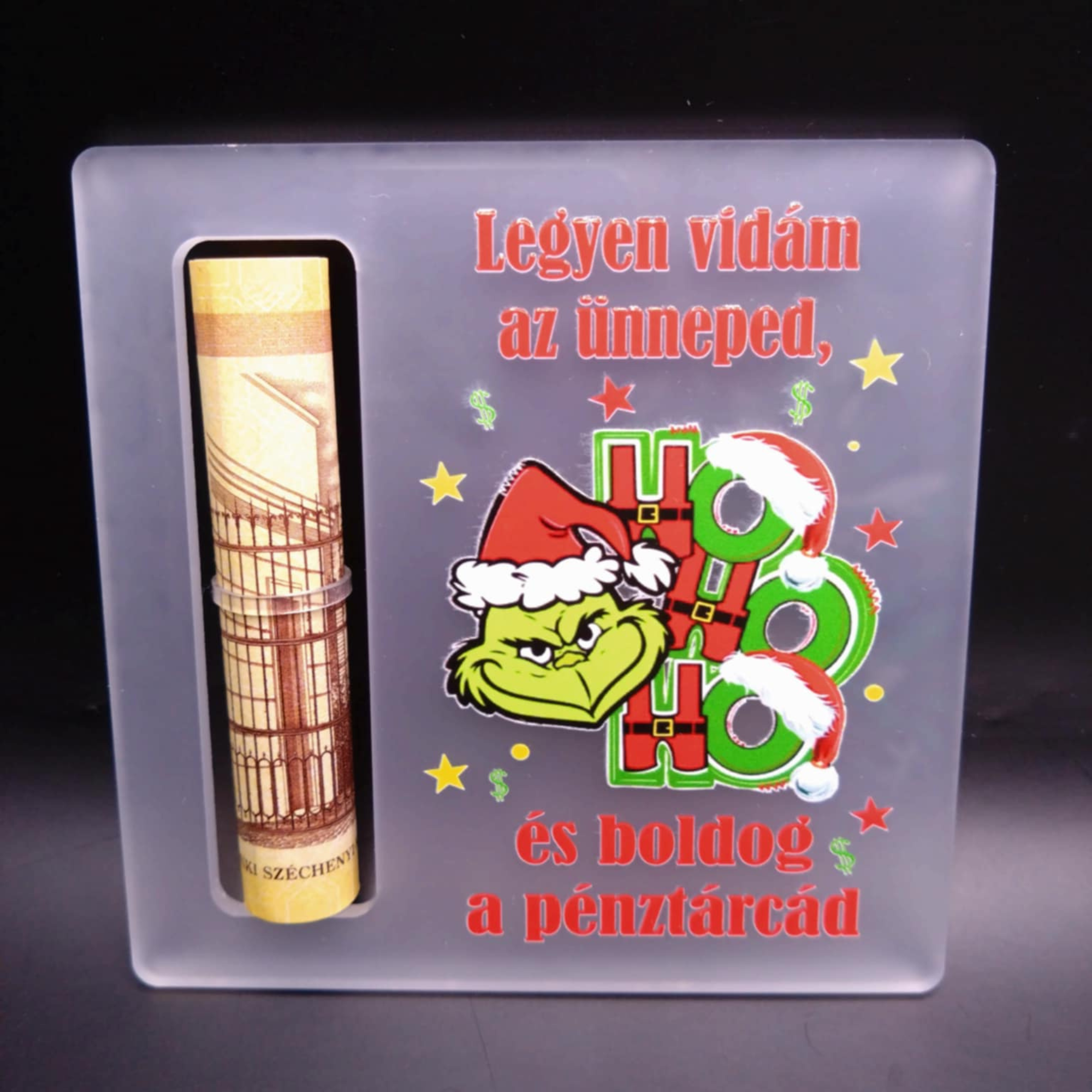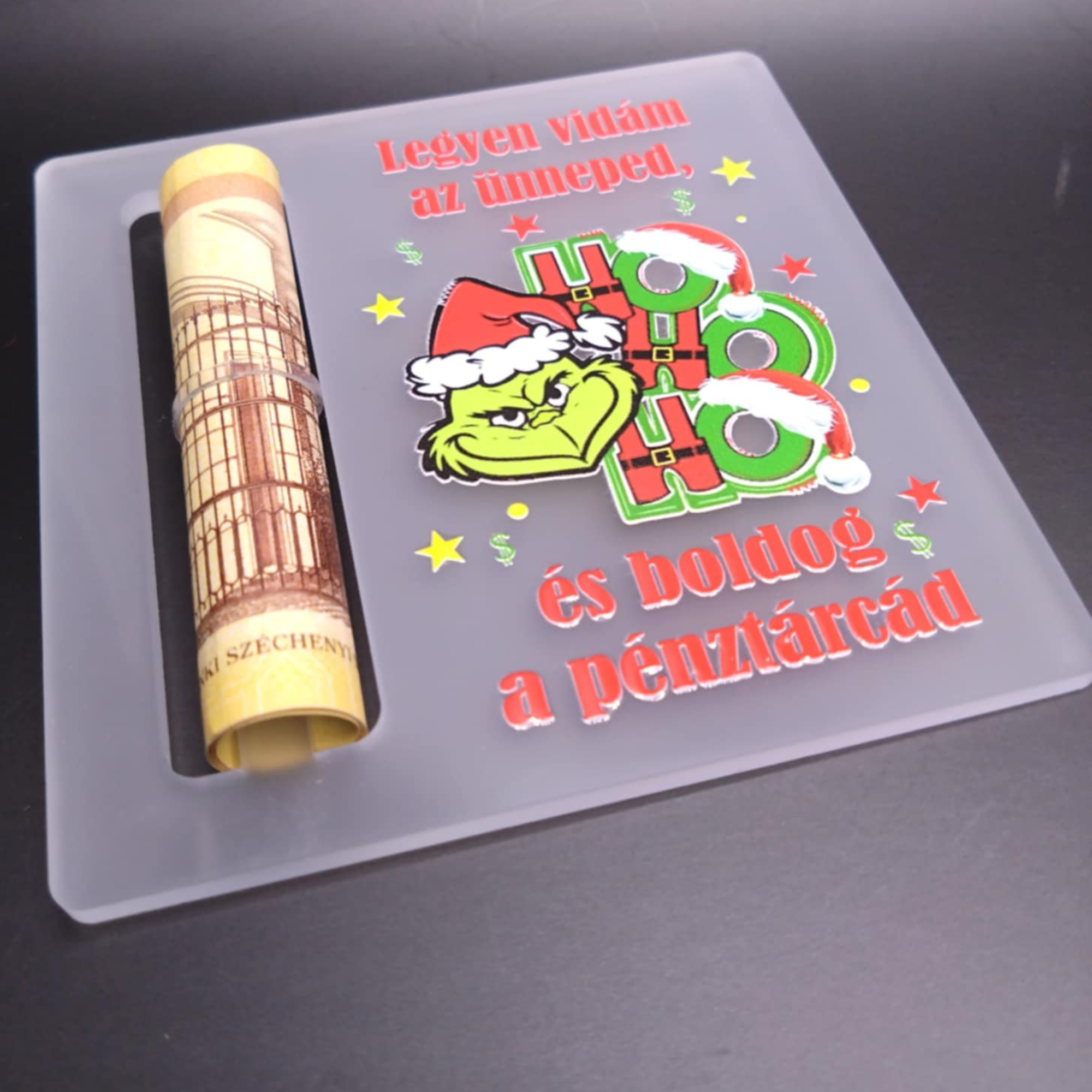 A Grincses akril pénzátadó azoknak való, akik szeretik, ha az ajándékozásban van egy kis csipkelődés és őszinte humor.