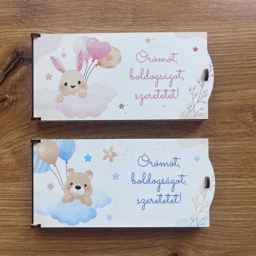 Tedd még különlegessebbé az ajándékozás pillanatát – ez az UV nyomtatott, bájos mintákkal díszített pénzátadó doboz tökéletes választás, ha pénzt ajándékoznál, de nem akarsz sablonos megoldással élni. A borítékoktól személyesebb, maradandó módja a készpénz átadásának egy lézervágott ajándékkísérő doboz.