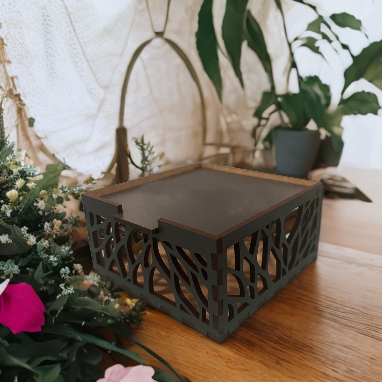 Az elegáns lézervágott minta a doboz oldalain átengedik a fényt, megmutatja a doboz tartlamát. Színes jegyzettömbbel vidám megjelenést kölcsönözhet íroasztalodnak, miközben segít beilleszteni az egyszerű papír jegyzettömböt az irodád dekorjába. Mérete ideális sztenderd méretű jegyzettömbök, irodaszerek tárolására, de természetesen bármit tárolhatsz benne, amit csak szeretnél. Ajándékkártyák, készpénz, kisebb ajándéktárgyak átadására is tökéletes, ha szeretnél egy olyan különleges, maradandó csomagolást, amit az ajándékozott később újra fel tud használni ahelyett, hogy azonnal a kukában landolna.