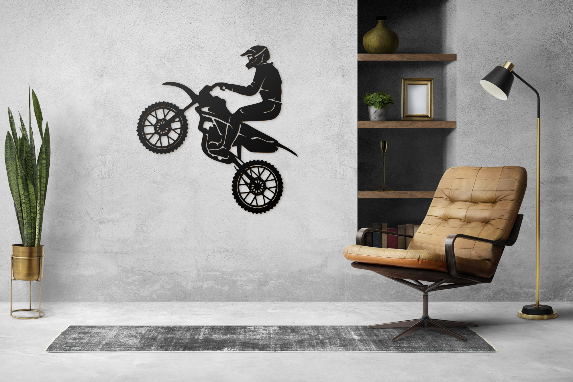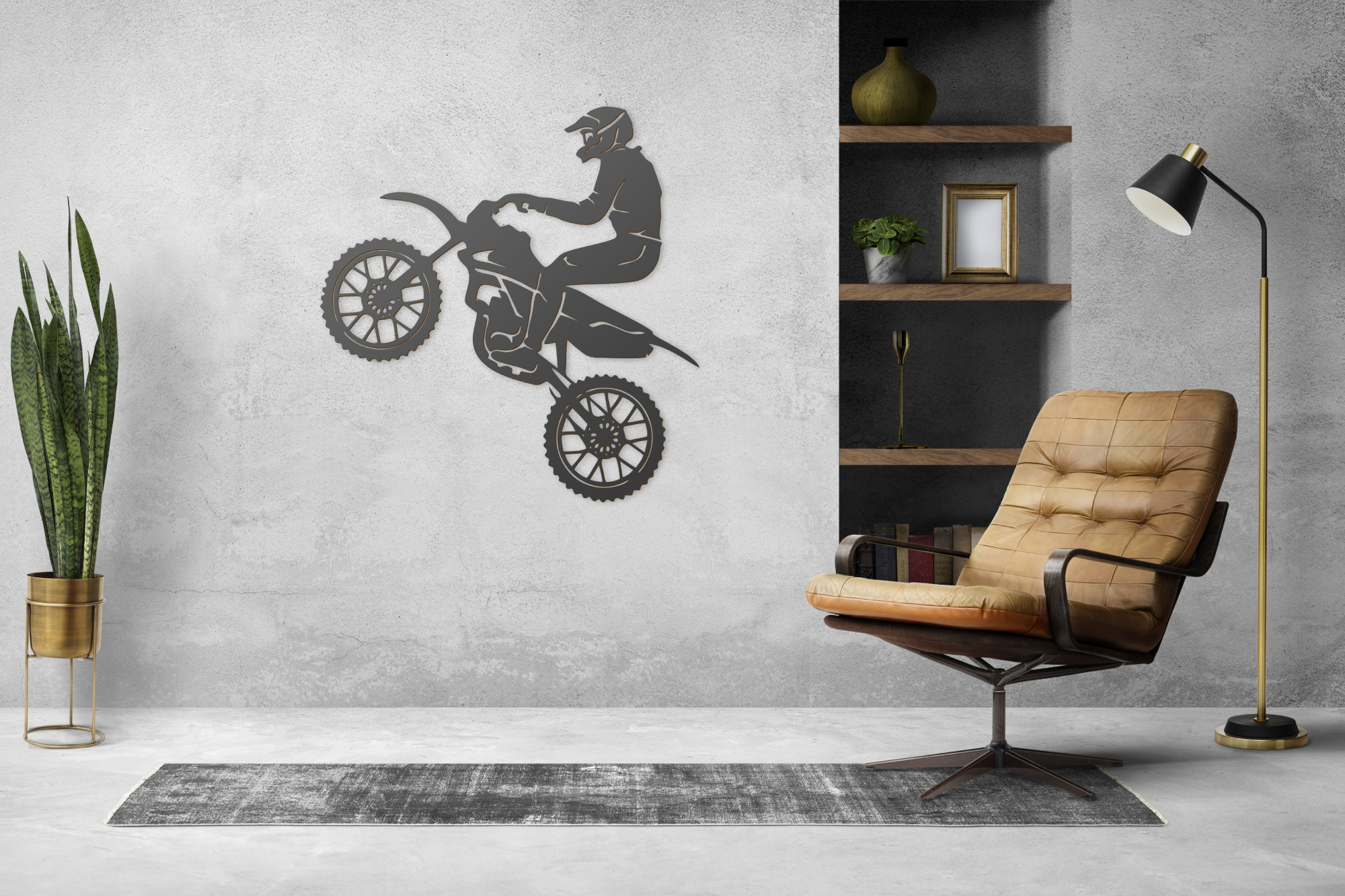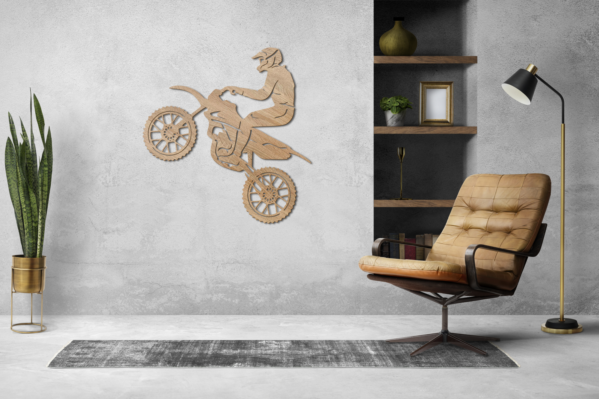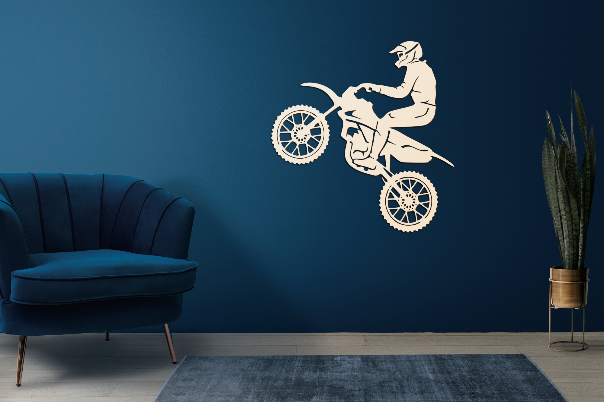 A motocross veszélyes sport, magas szintű koncentrációt, gyors reflexeket, alacsony reakcióidőt és nem utolsósorban hatalmas fizikai állóképességet igényel. Most ezt a népszerű motoros sportot otthonod biztonságából is élvezheted! A hihetetlenül precíz lézervágó gépünkkel gyártott falikép modern, minimalista stílusban jeleníti meg a motor és motoros sziluettjét, így igazán markáns, karakteres dekorációja lehet nappalidnak, irodádnak, de akár a garázsban vagy műhelyben is különleges díszítőelem lesz.