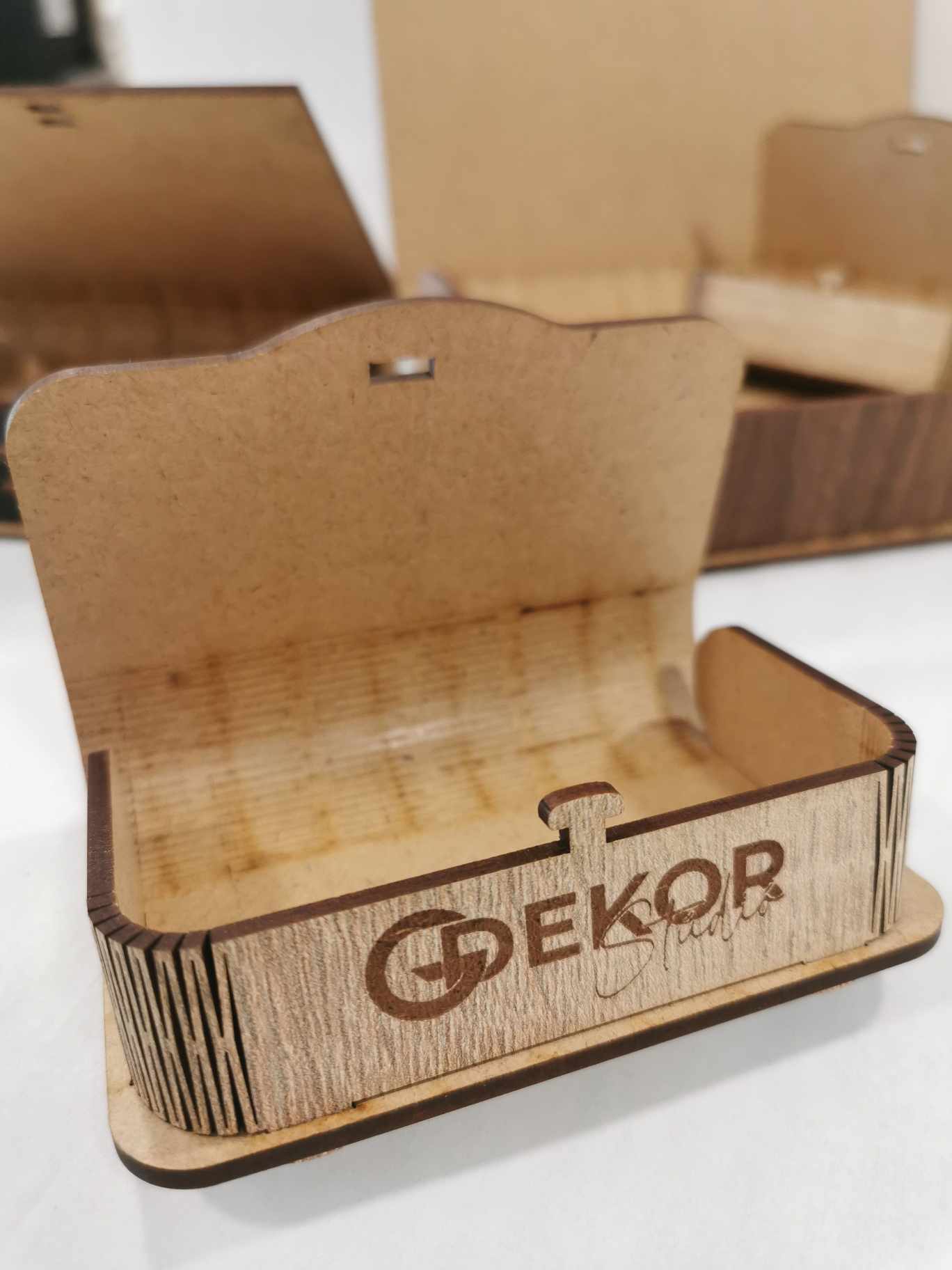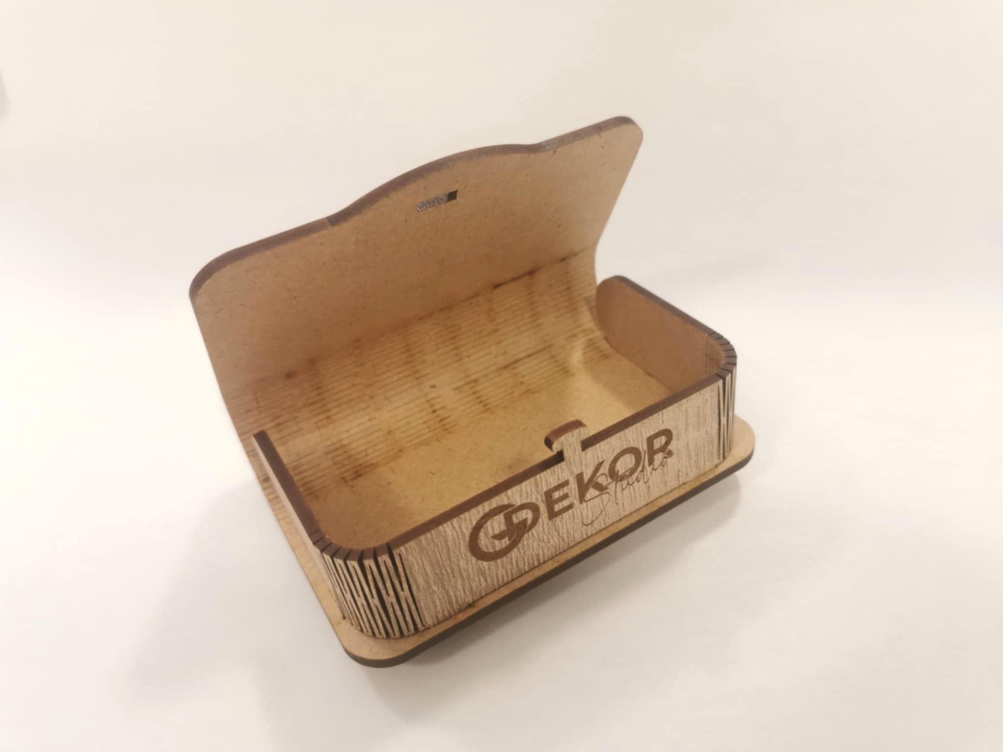 A lézervágott minta a doboz gerincén lehetővé teszi, hogy a szilárd HDF lemez félkörívesen hajoljon meg, ezzel egy elegáns, különleges dobozt alkotva. Kis mérete ideális névjegyek, egyéb kisméretű kártyák tárolására, de természetesen bármit tárolhatsz benne, amit csak szeretnél. Ajándékkártyák, kisebb ajándéktárgyak átadására is tökéletes, ha szeretnél egy olyan különleges, maradandó csomagolást, amit az ajándékozott később újra fel tud használni ahelyett, hogy azonnal a kukában landolna. A doboz eleje és teteje is gravírozható egyedi felirattal, céges logóval, saját dizájnoddal. Egyedi mintára és méretre kérj árajánlatot! A gravírozható felület a tetőn 90 x 35 mm, a doboz elején 70 x 15 mm.