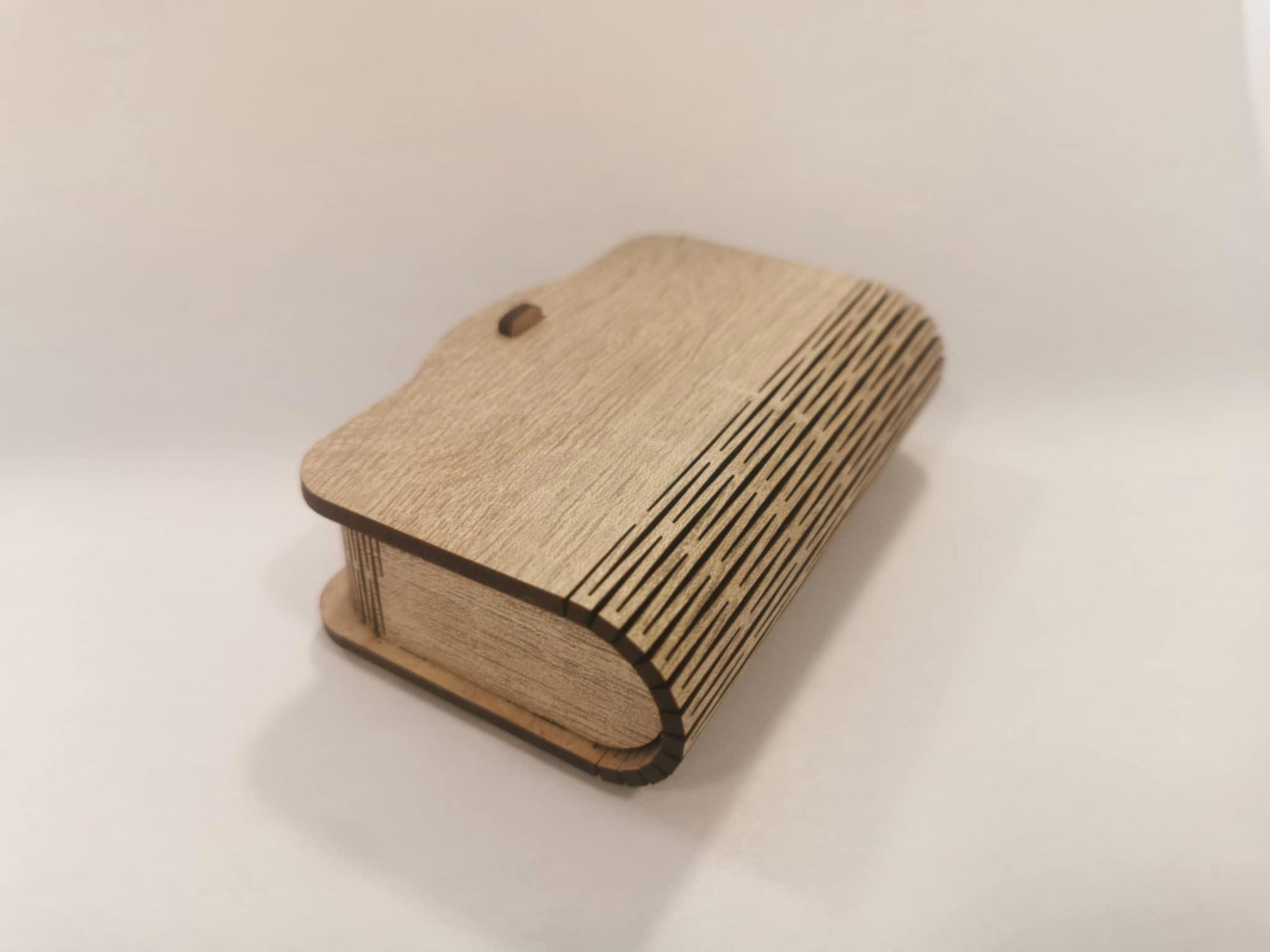 A HDF (High Density Fiberboard) farostból és gyantából préselt, nagy sűrűségű lemez. Gyakran újrahasznosított faanyagból készítik, ezzel minimalizálva a hulladékot, környezetbarátabbá téve a gyártási folyamatot. HDF lemezből készült termékeink lézertechnológiával készülnek, precíz lézervágónk egészen apró, összetett minták vágását is lehetővé teszi, így hihetetlenül részletes dizájnokat is tudunk készíteni. A lézer boxok többféle méretben és záródással készülnek, fedeleik külöböző módon mozognak. Az úgynevezett "living hinge" (élő zsanér) technológiával a sűrűn átvágott HDF lemezt hajlítani lehet, a szilárd 3 mm-es lemezből lekerekített éleket hozhatunk létre. A dobozok összeszerelése is változatos, van amelyik ragasztással történik, van amelyik egyszerűen egymásba pattanó, szorosan illeszkedő elemekből áll.