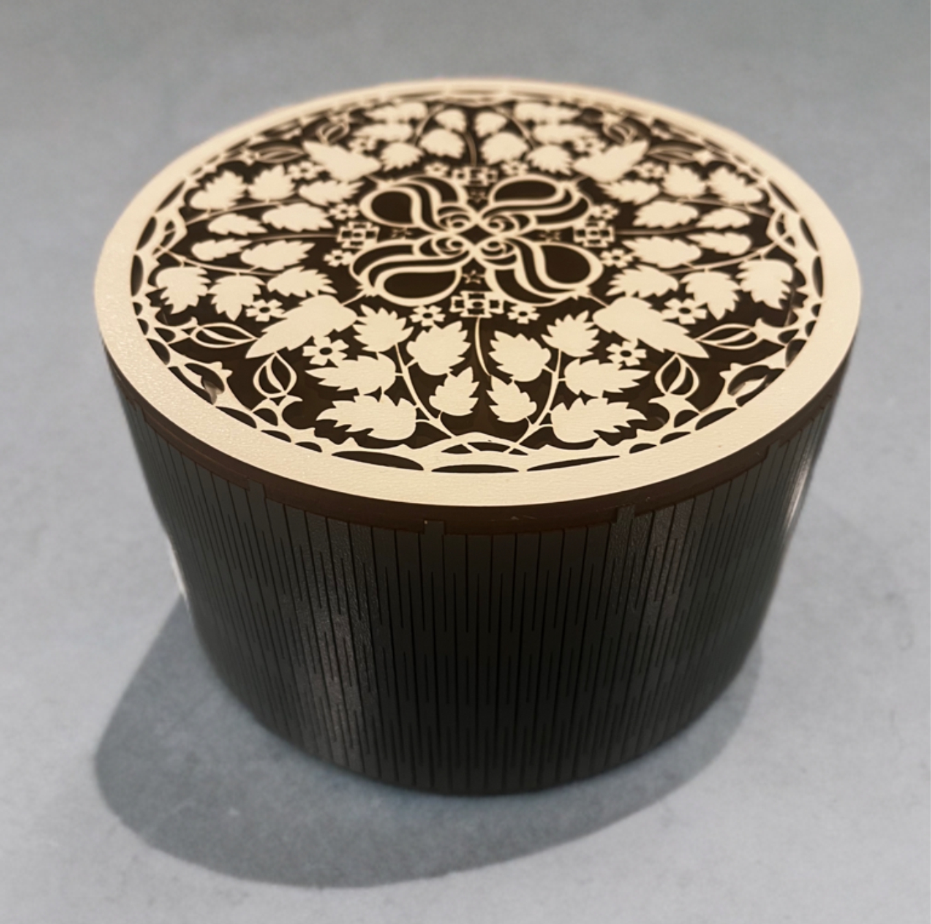 A HDF (High Density Fiberboard) farostból és gyantából préselt, nagy sűrűségű lemez. Gyakran újrahasznosított faanyagból készítik, ezzel minimalizálva a hulladékot, környezetbarátabbá téve a gyártási folyamatot. HDF lemezből készült termékeink lézertechnológiával készülnek, precíz lézervágónk egészen apró, összetett minták vágását is lehetővé teszi, így hihetetlenül részletes dizájnokat is tudunk készíteni. A lézer boxok többféle méretben és záródással készülnek, fedeleik külöböző módon mozognak. Az úgynevezett "living hinge" (élő zsanér) technológiával a sűrűn átvágott HDF lemezt hajlítani lehet, a szilárd 3 mm-es lemezből lekerekített éleket hozhatunk létre. A dobozok összeszerelése is változatos, van amelyik ragasztással történik, van amelyik egyszerűen egymásba pattanó, szorosan illeszkedő elemekből áll.