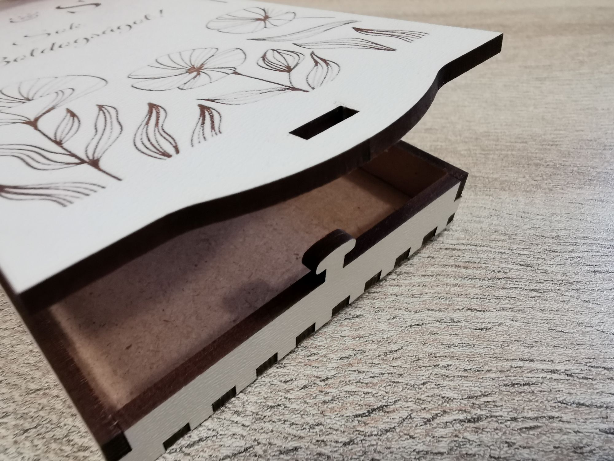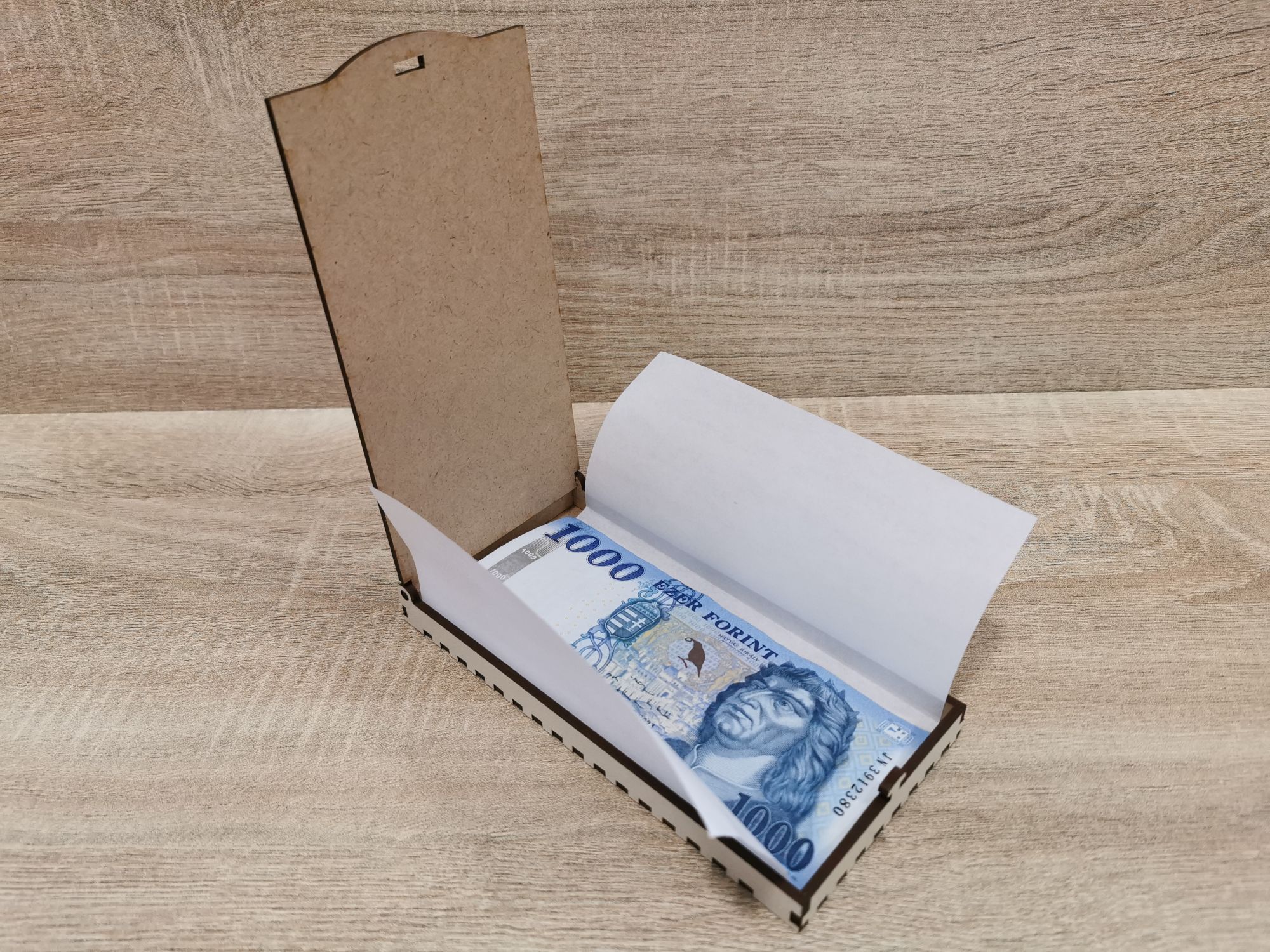 Ha még különlegesebb megjelenésre vágysz - extra költség ellenében - pénzátadó dobozainkat egyedi gravírozással vagy UV nyomtatással is kérheted .