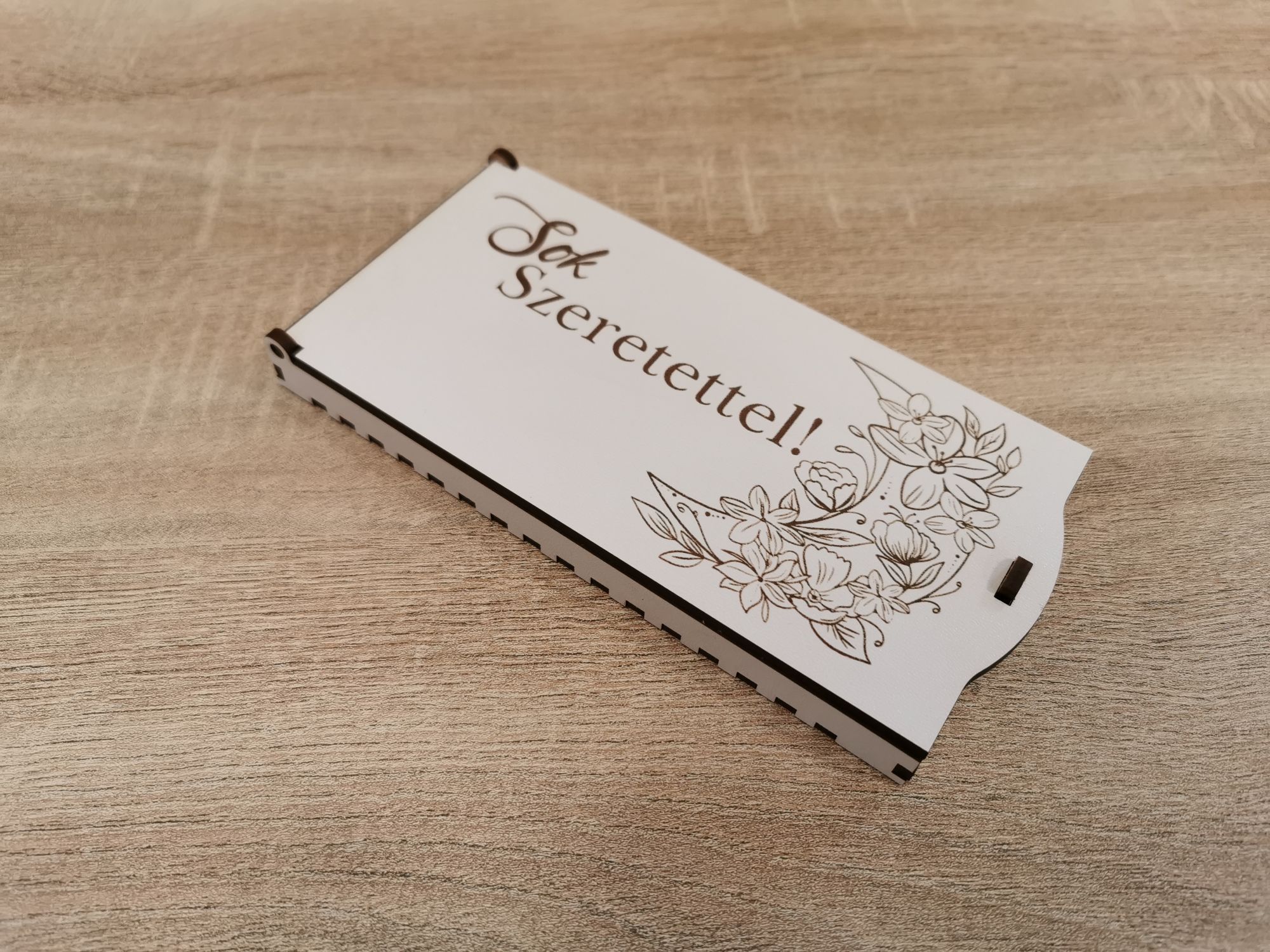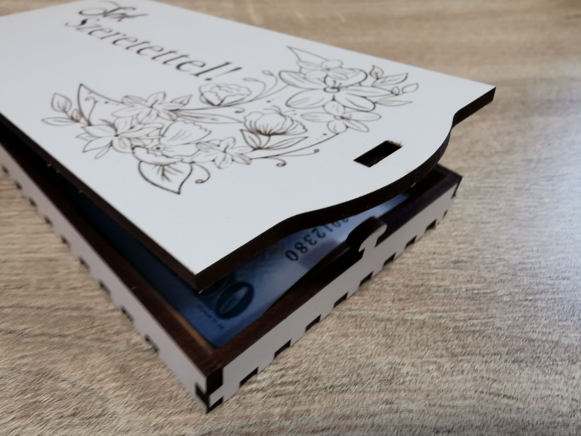 Ha még különlegesebb megjelenésre vágysz - extra költség ellenében - pénzátadó dobozainkat egyedi gravírozással vagy UV nyomtatással is kérheted .
