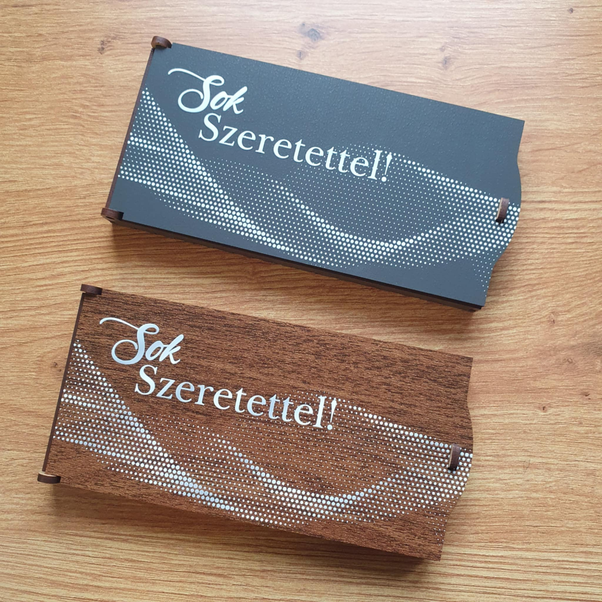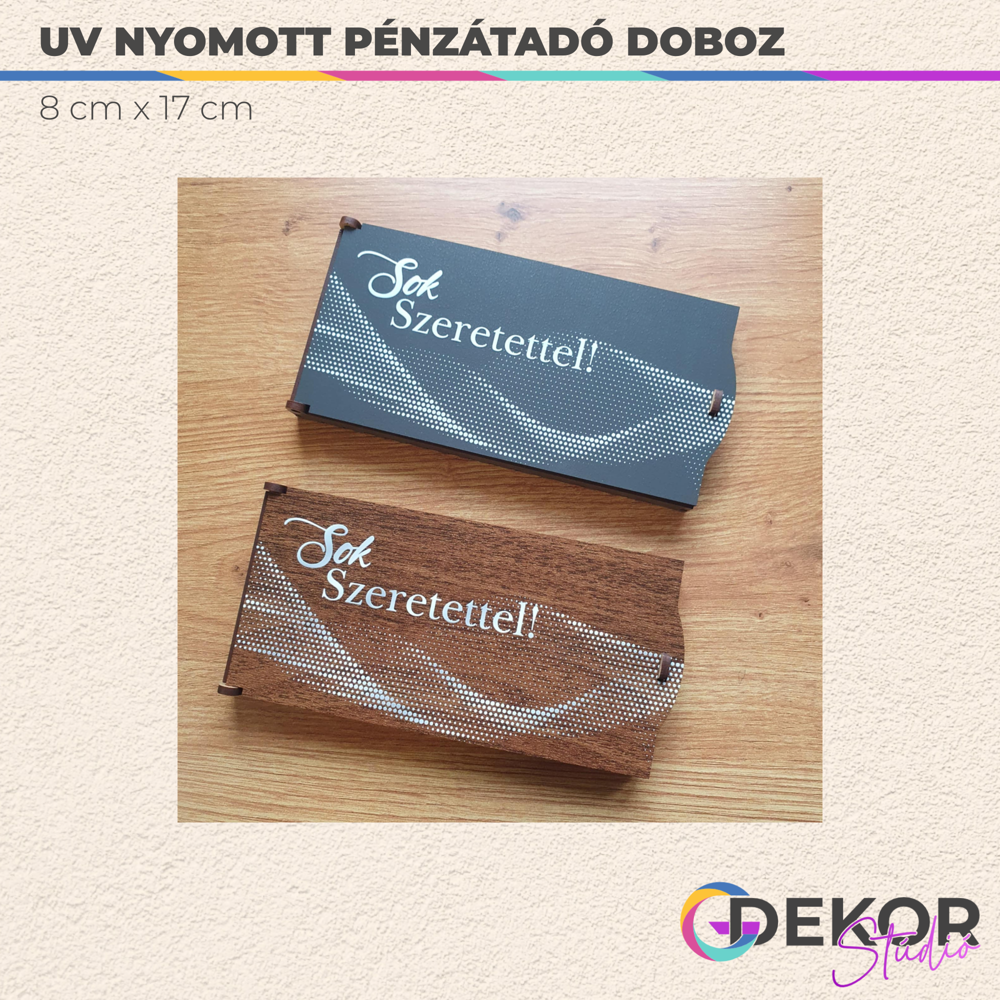 Ha még különlegesebb megjelenésre vágysz - extra költség ellenében - pénzátadó dobozainkat egyedi gravírozással vagy UV nyomtatással is kérheted .