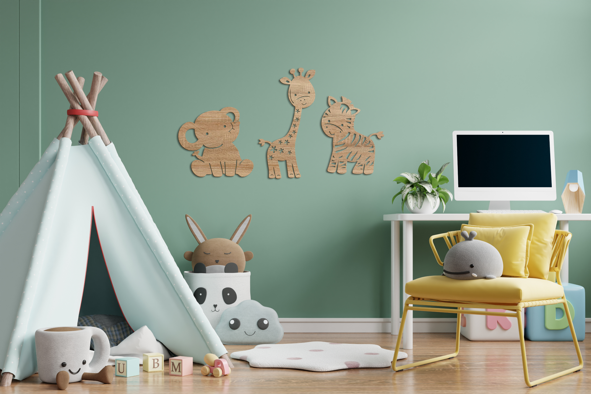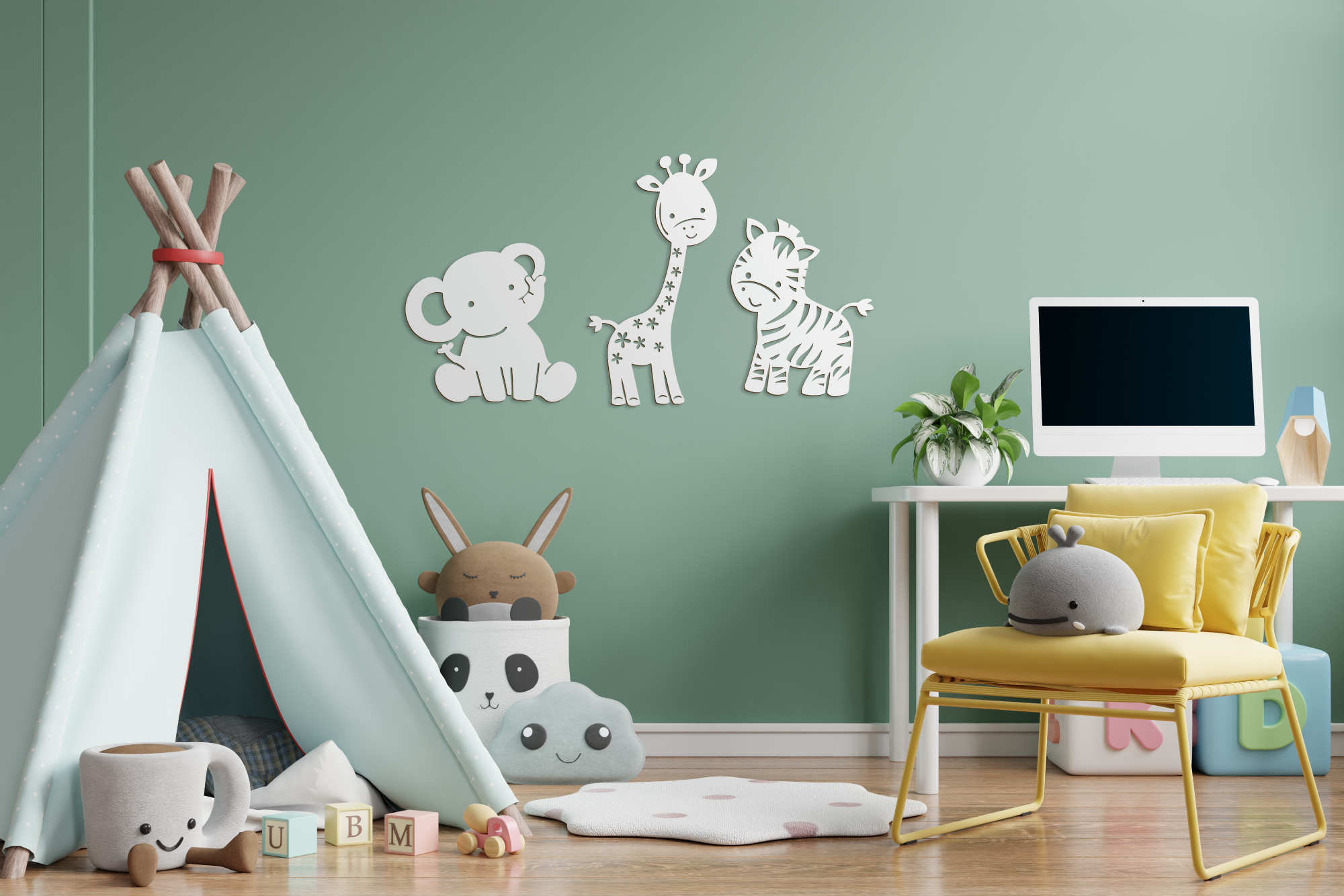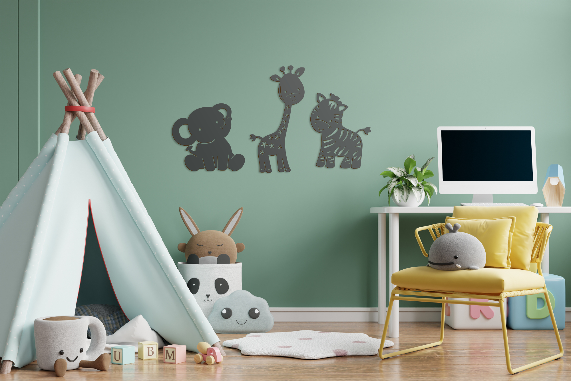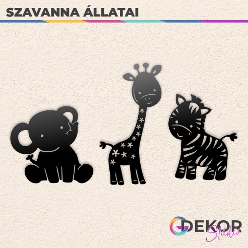Afrikai szavannái tele vannak csodásnál csodásabb vadállatokkal. A foltos zsiráf és csíkos zebra mellett a szavannák kedves óriása, az elefánt is gyakori kedvence kicsiknek és nagyoknak. Helyezd el őket egymás mellett a játszósarokban, vagy akár egyesével a gyerekszoba különböző falain. A megadott méret a képen illusztrált elrendezésre értendő, a minta tetszés szerint, külön-külön felhelyezhető.