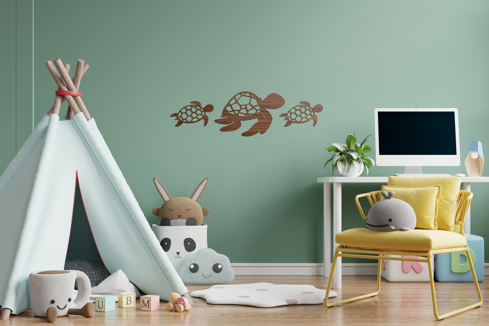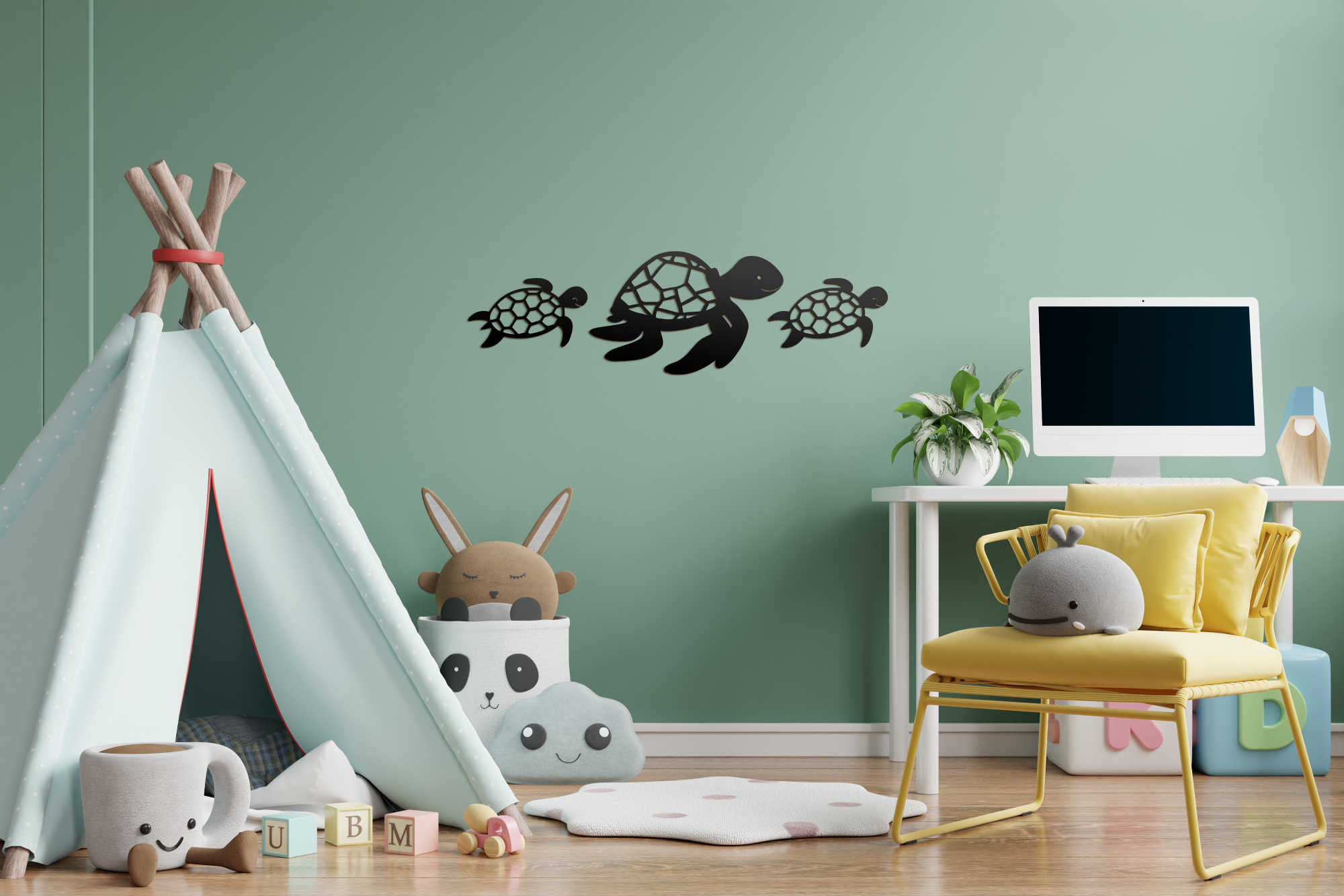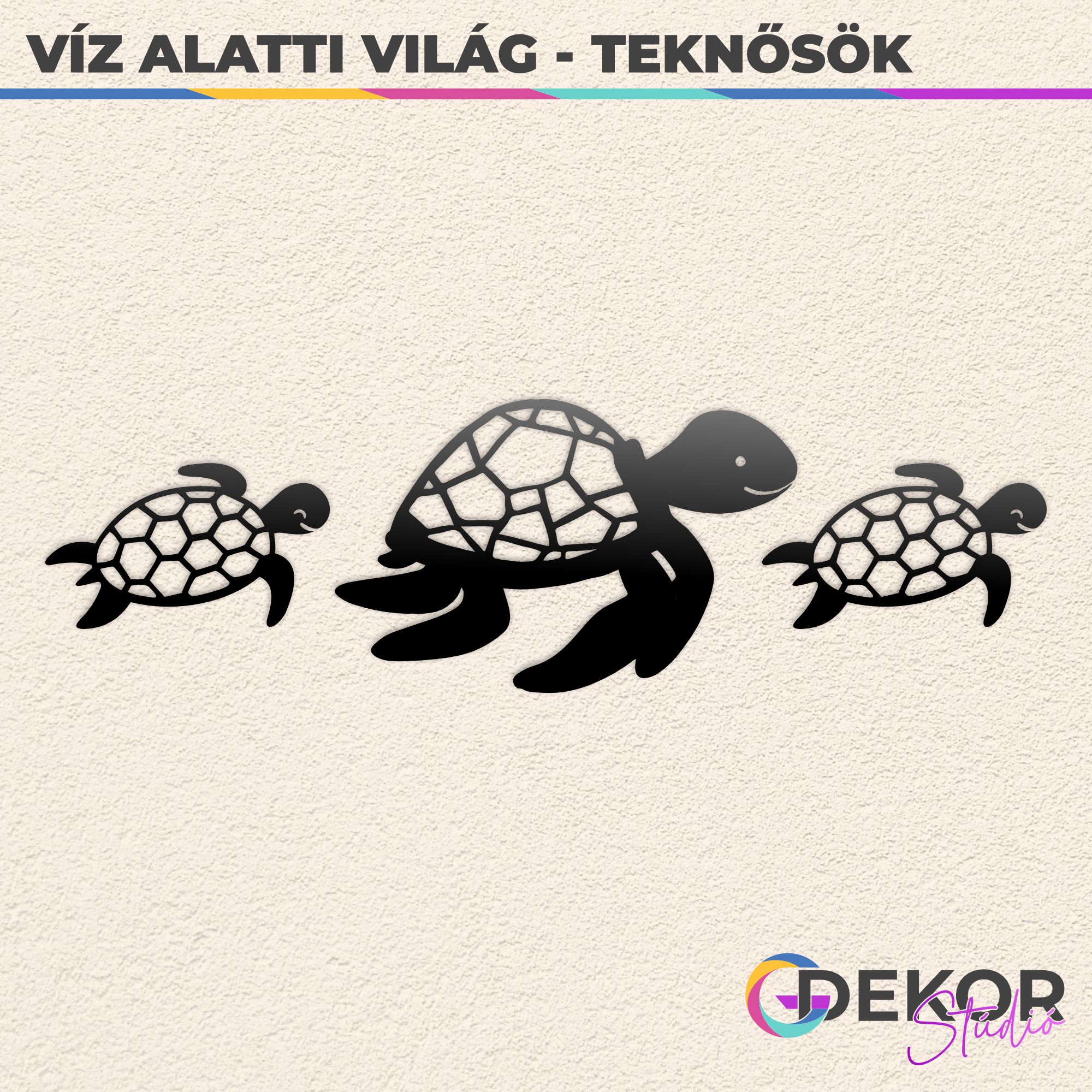 A tengeri teknős a tengerek, különösen a Bahamák ikonikus állatai. Tengerpartok homokjába ássák tojásaikat, azonban a homok hőmérséklete sem mindegy az egészséges utódok fejlődéséhez. A kikelt kisteknősök azonnal a víz felé veszik az irányt. Természetes élethosszuk több mint 50 év, akár 100 évet is élhetnek, ezért több kultúrában a hosszú élet szimbólumai. A szettben két kisebb (160 x 93 mm) és egy nagyobb (260 x 165 mm) teknős minta található. A termék a Víz Alatti Világ panoráma szett kiegészítő eleme, de nagyobb méretének köszönhetően önálló dekorációként is megállja helyét gyerekszobában, játszósarokban, óvodákban. Több féle méretben és színben elérhető, így biztosan megtalálod a Te falszínedhez és stílusodhoz illő változatot.