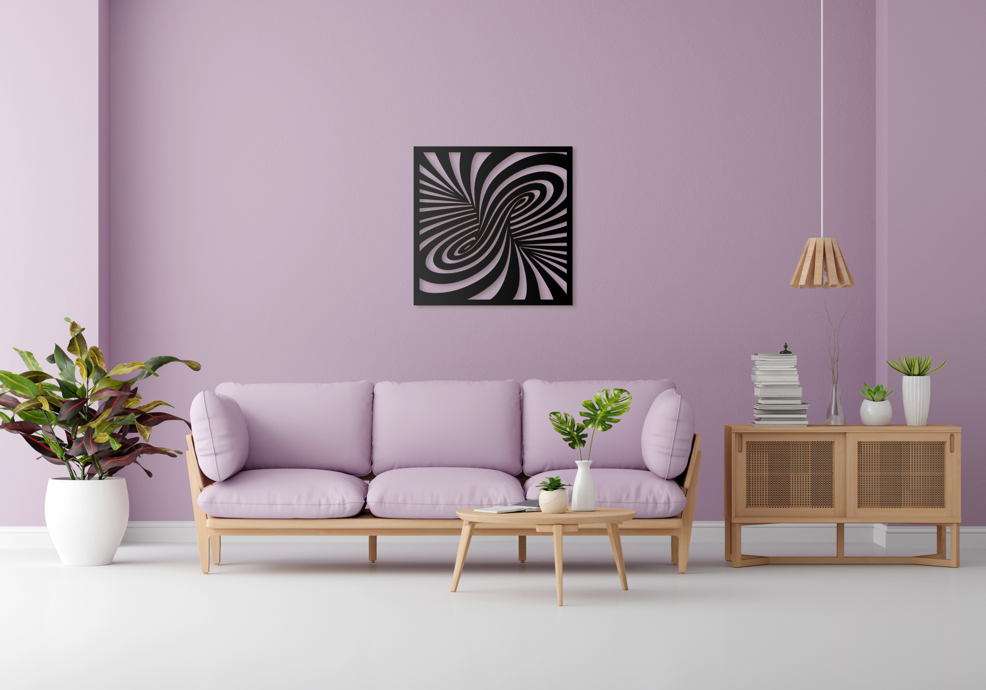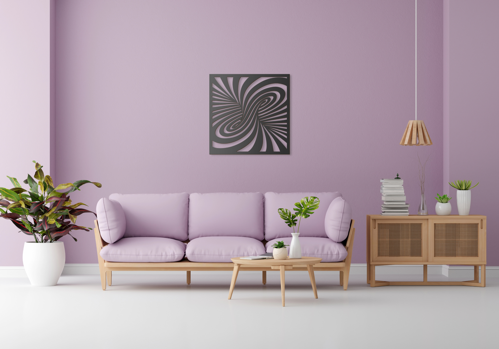 Játékos, modern dekoráció lehet bármilyen térben egy optikai illúziót ábrázoló falpanel. Különleges mintája kiemelkedik a síkból, mintha egy oszlop körül csavarodnának csíkjai. Ez a minta állítva és fektetve is egyformán jól mutat.